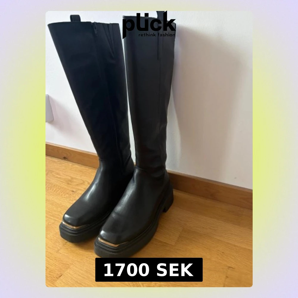 Säljer ett par svarta höga boots från Steve Madden. Boots i skinn med dragkedja på insidan och cool metall-detalj framtill på sulan. Utgångspris 2399kr. Använda en gång!