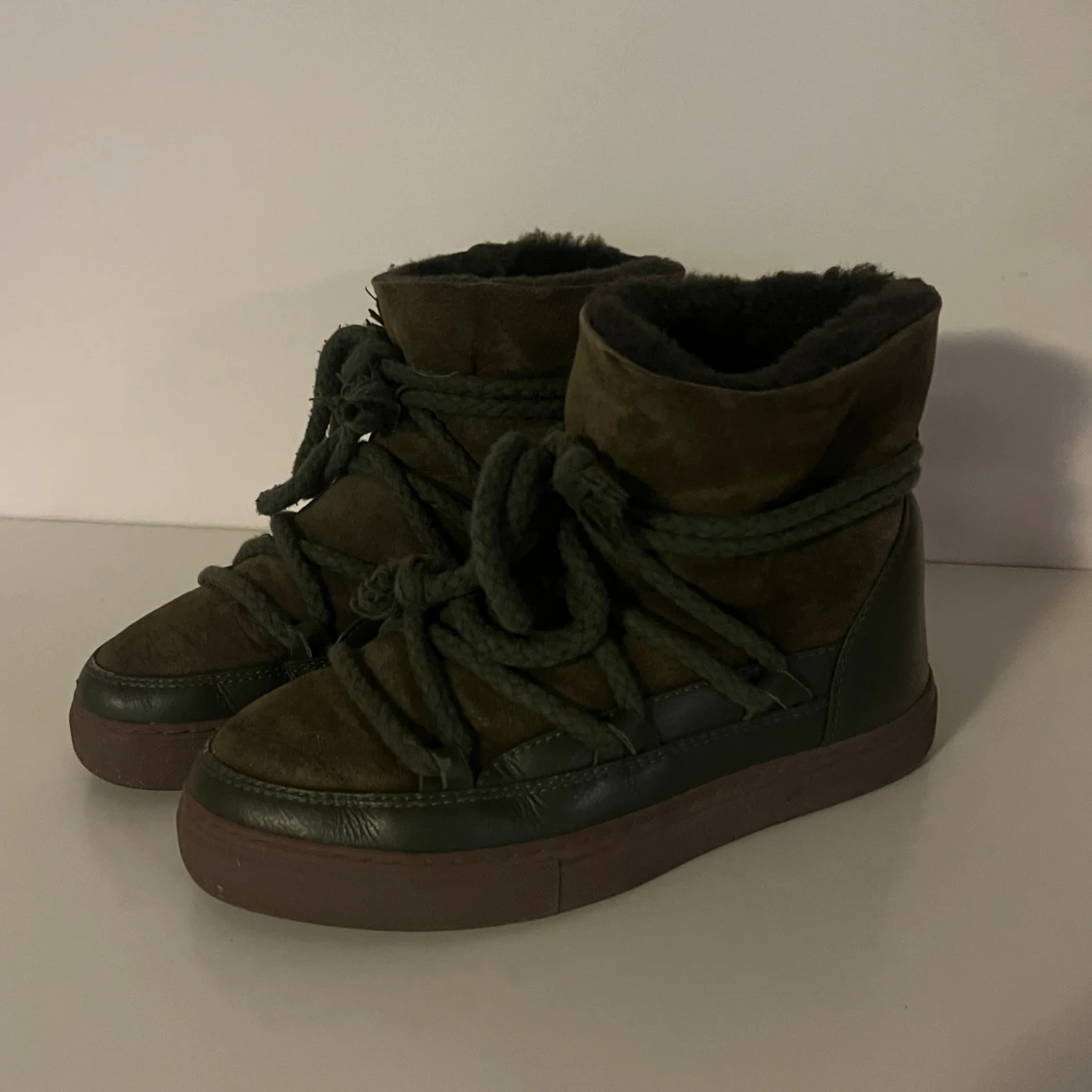 Säljer ett par snygga Inuikii skor i mörkgrön, köpte dom förra vintern så de är använda men det är verkligen inget man tänker på! Inga större defekter💞