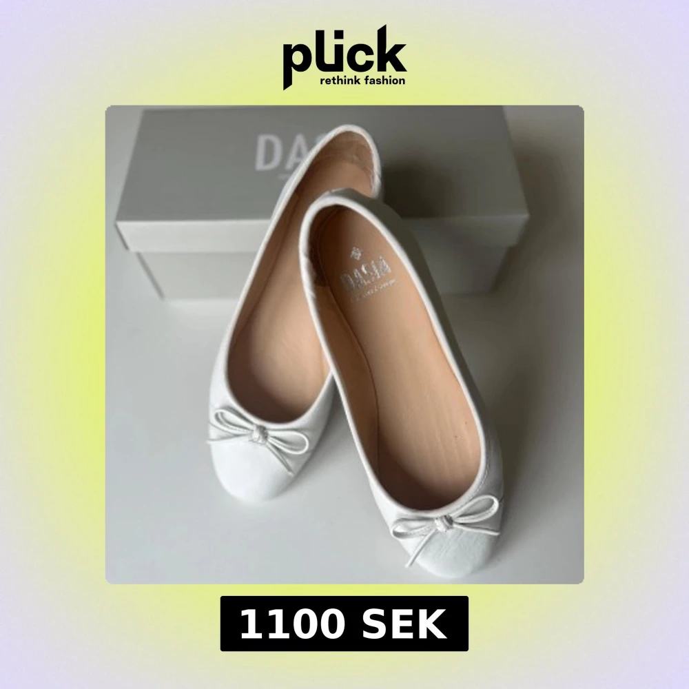 Jättefina vita ballerinaskor från Dasia i mjukt skinn. Säljer dessa pga av att de är för stora för mig. Köpte för inte alls längesen och har endast använt 1 gång, så de är precis som nya (därav priset)! De är väldigt sköna då de är i riktigt skinn och verkligen superfina nu till sommaren!