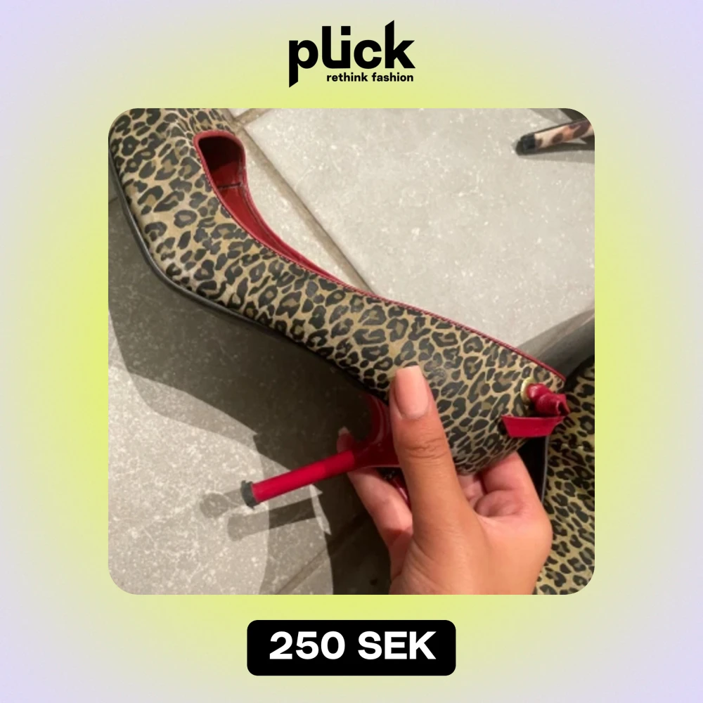 stilettklackar med leopardmönster o halv röd sula. Såå unika o coola!! tyvärr kommer de ej till användning🥲strl 39 men passar mig bra som har 40 typ