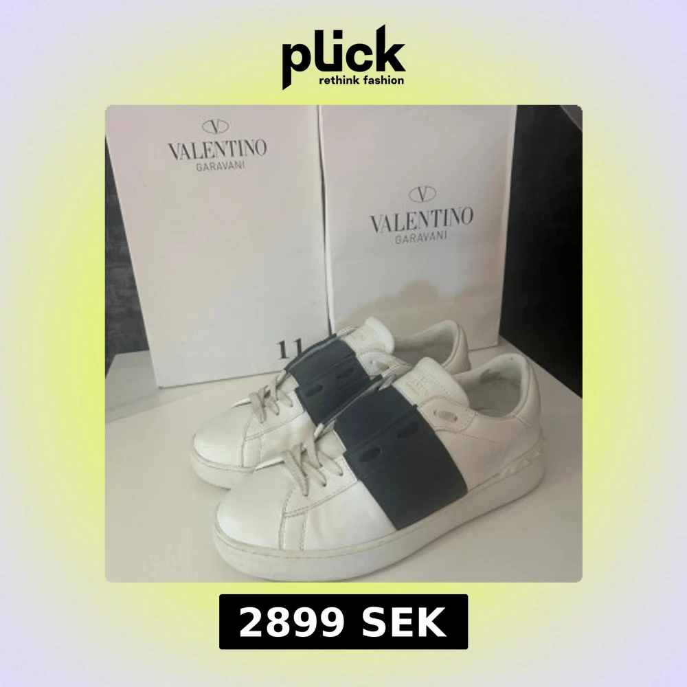 Tja. Säljer ett par as feta sneakers från Valentino Garavani med ett brett svart band över vristen. Skorna har rund tå, platt sula och klassisk snörning. Perfekta för dig som gillar stilrena och exklusiva sneakers med en unik twist. Passar perfekt till sommaren som börjar närma sig. Storlek 44 men passar även 43 minst lika bra 😊 Tveka inte på att höra av er vid funderingar 🤩🙌