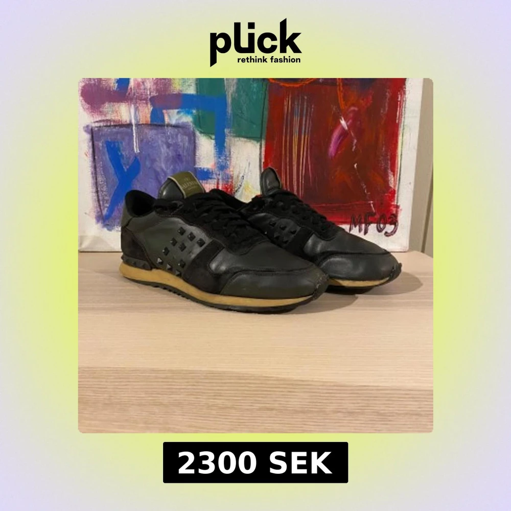 Snygga svarta sneakers från Valentino med nitar på sidorna och en klassisk design. Skorna har en robust sula och är perfekta för en stilren look. Dem är i ett väldigt bra skick✅ Om du undrar något så är det bara att fråga på, jag svara så snabbt jag kan🙌Jag kan gå ner i pris vid snabb affär