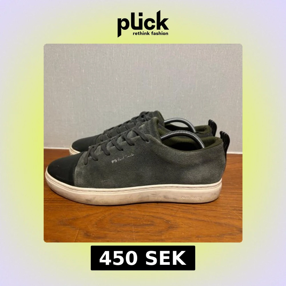 Ett par feta mörkgröna sneakers från Paul Smith med vita sulor. Skorna har en stilren design med märkets logga på sidan. Perfekta för en avslappnad stil. Storlek 42. Nypris 2400kr