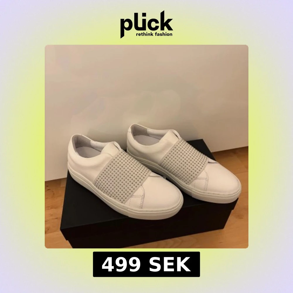 Snygga vita sneakers från Rizzo med en bred rem dekorerad med små pärlor. Aldrig använda bara prövade. Orginalpris 1500 kr. Pris går att diskutera.