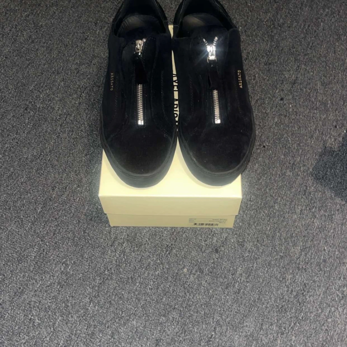 Snygga svarta sneakers från Axel Arigato med dragkedja på ovansidan. Skorna är tillverkade i mocka och har en stilren design med låg profil. Perfekta för en modern och minimalistisk look.