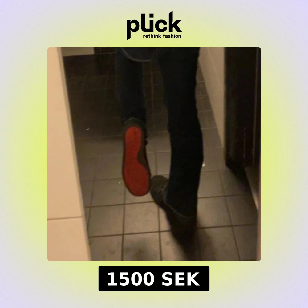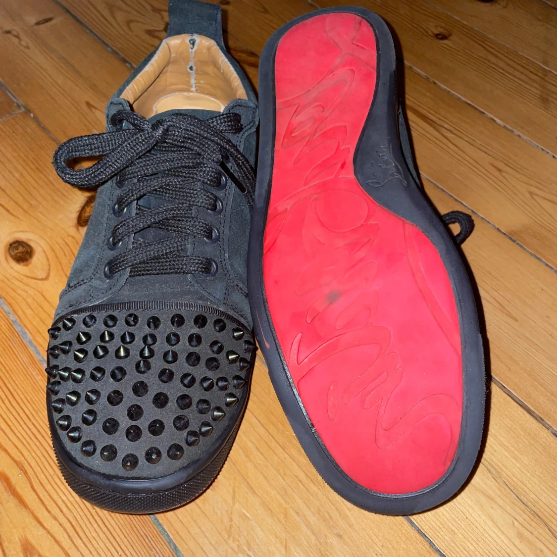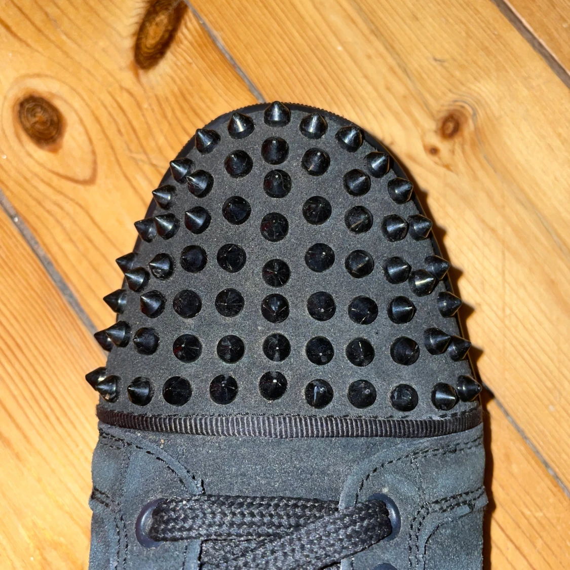 Snygga Louboutin sneakers med nitar på tån. Skorna har snörning och är tillverkade i mocka. Perfekta för att ge din stil en edgy touch. Köpta på Plick och finns därmed ingen låda till dem. Fråga om fler bilder!