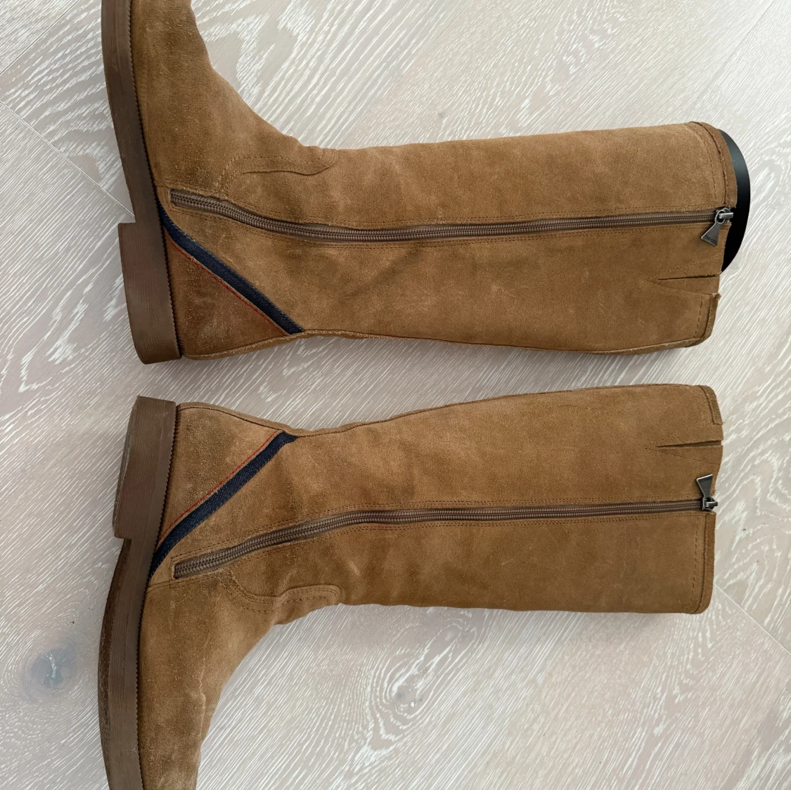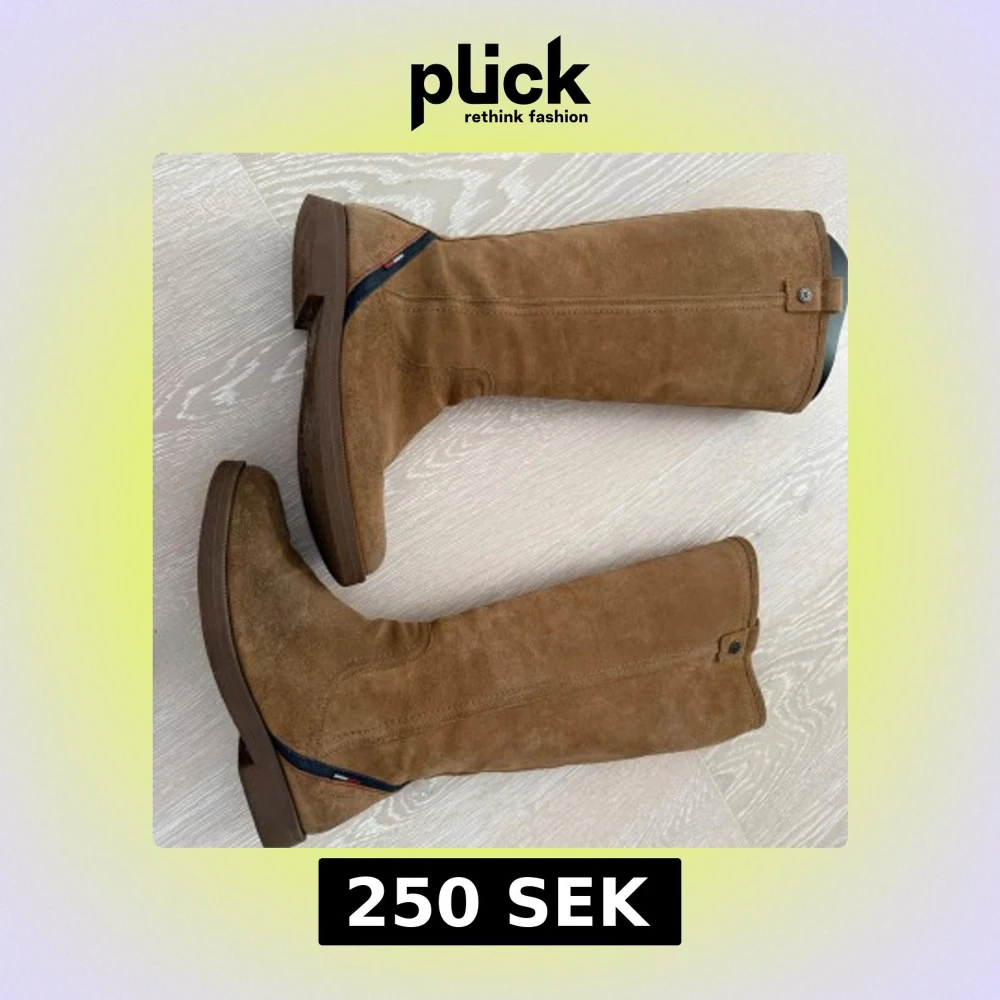 Snygga bruna stövlar i mocka från Tommy Hilfiger med dragkedja på insidan och en diskret blå och röd detalj vid hälen. Platt sula och klassisk rund tå gör dem perfekta till många outfits. Stövlarna har en stilren look och är lätta att matcha. Molly 10B.