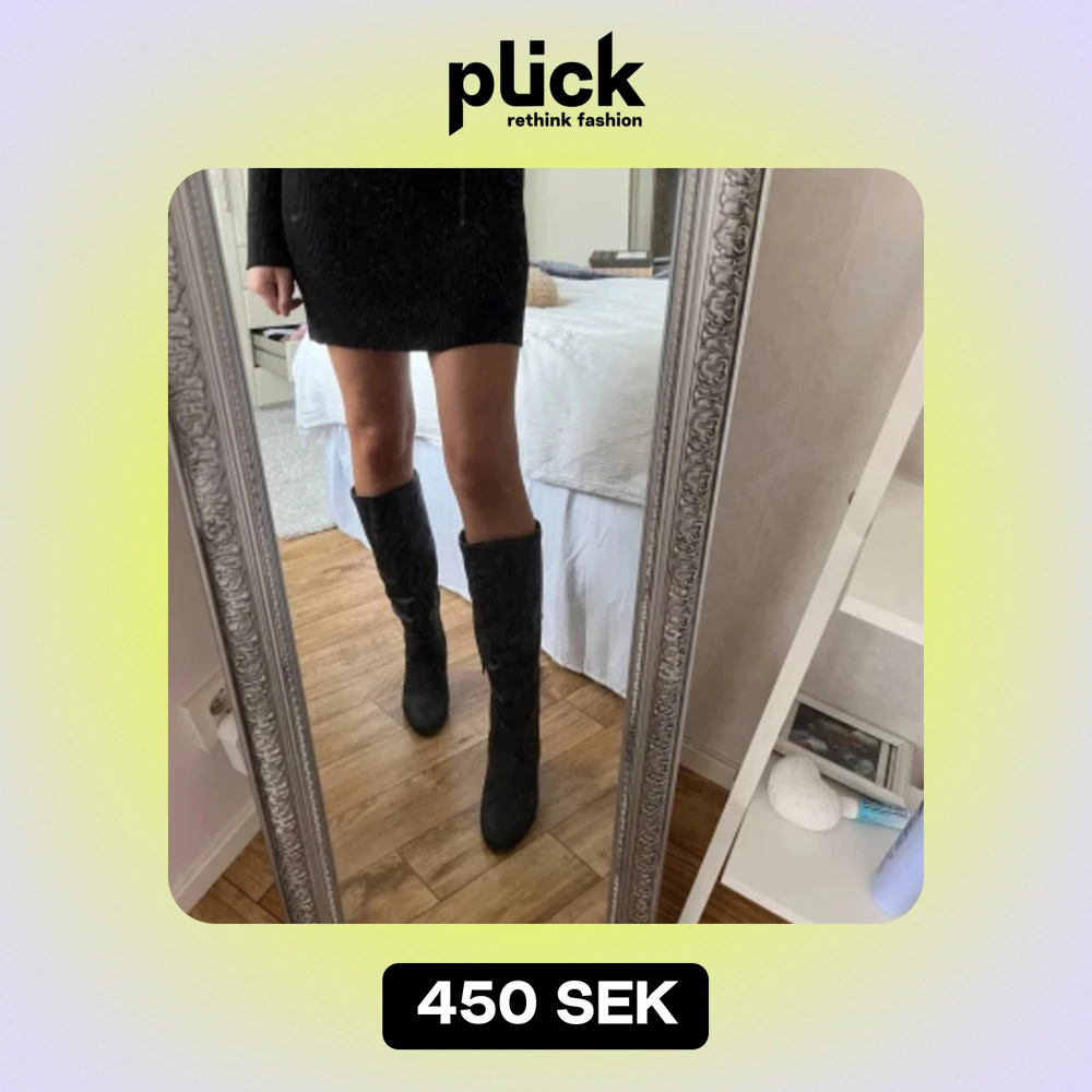 Supersnygga stövlar med klack, brett skaft. Små i storleken, passar en 38/39.