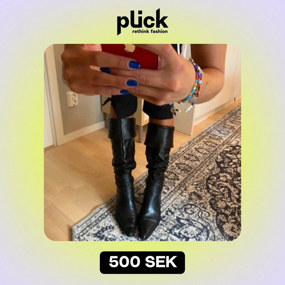 Boots/stövlar i äkta läder med klack. Går att dra upp högt (över knäna) men man kan också stylea dem nedvikta eller ”nerhasade”! Sjukt fina och verkligen riktigt fint skick trots välanvända❤️❤️liten dragkedja på insidan.