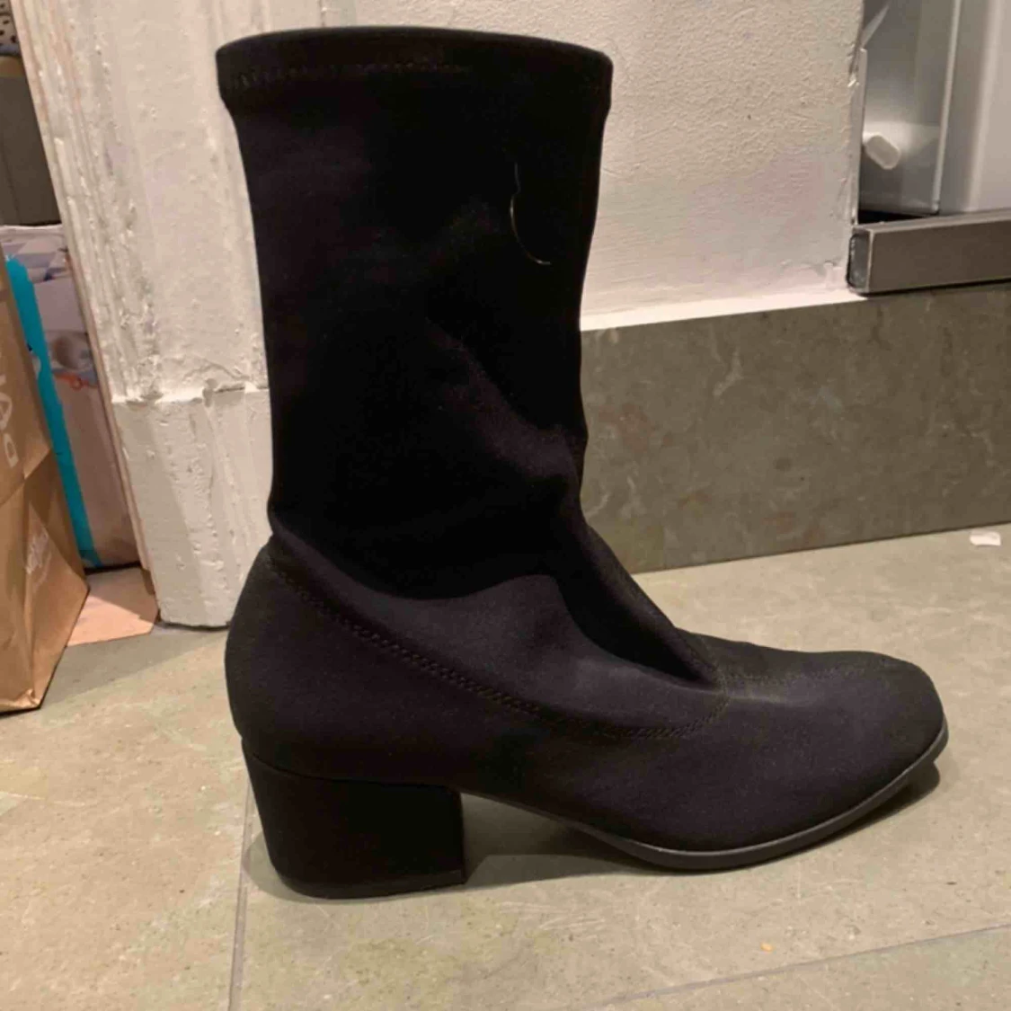 Svarta stövletter från vagabond, använda sparsamt således i gott skick! Strechigt material för god passform. Sköna! Klackhöjd 5 cm.