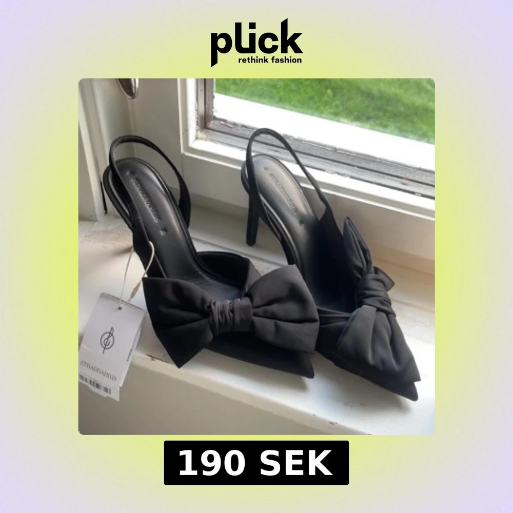 svarta klackar med rosett. helt nya endast testade. dom var lite högre än va ja tänkte därför säljer ja dom då ja ej kan lämna tillbaka dom längre. klacken är 10 cm. nypris 399kr
