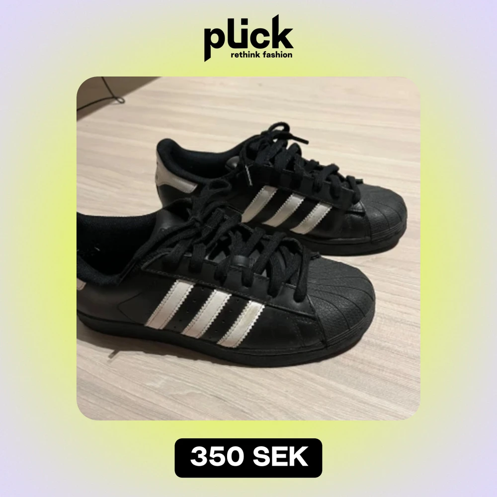 Svarta adidas superstar i storlek 37 1/3, små tecken på användning men inget märkvärdigt💕