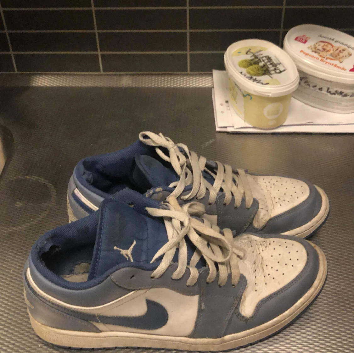 Jordan 1 i storlek 45 skick 6 av 10 kommer rena dom innan de skickas har hål i bakdelen av insidan men går ändå att använda