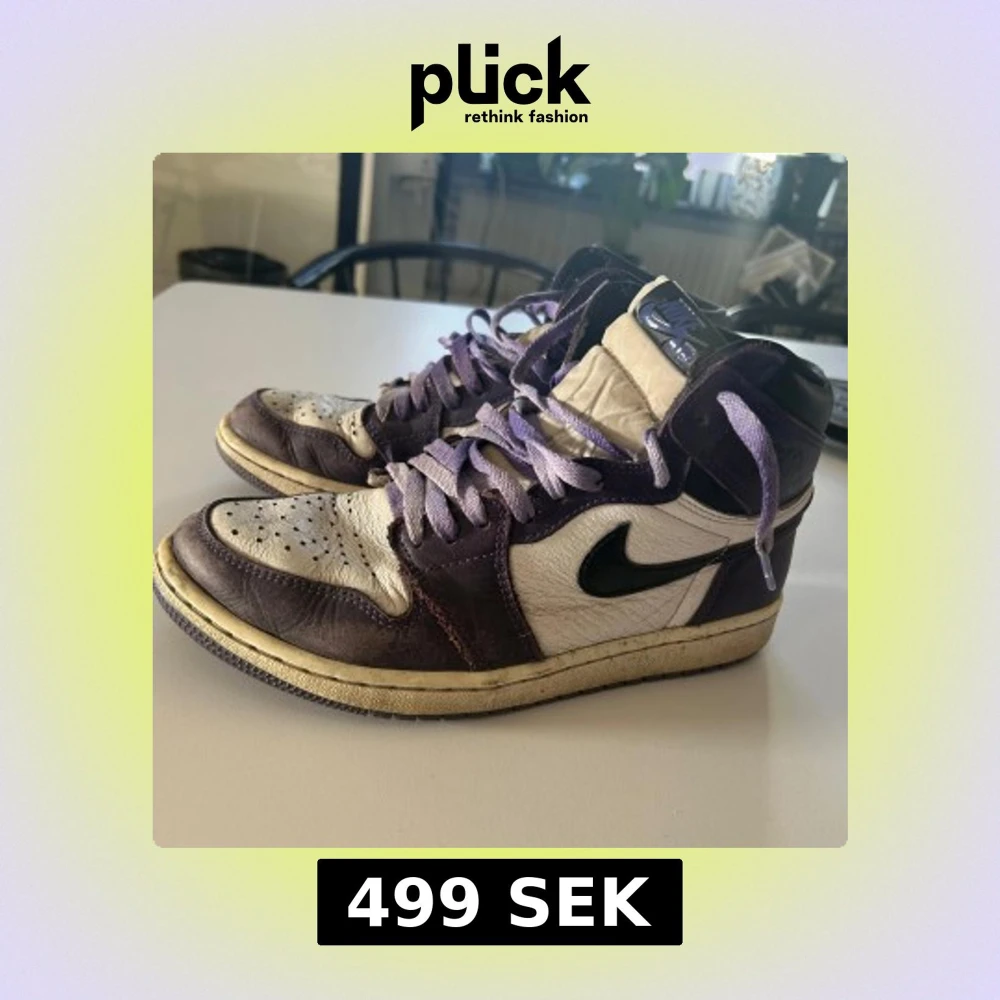 Ett par Jordan 1 high’s i färgen court purple. Riktigt feta och i helt okej skick, dock är det mesta smuts som går att rengöra. De är köpta från StockX för några år sedan och därmed är dem äkta. Skriv vid fler frågor! ☺️🤝