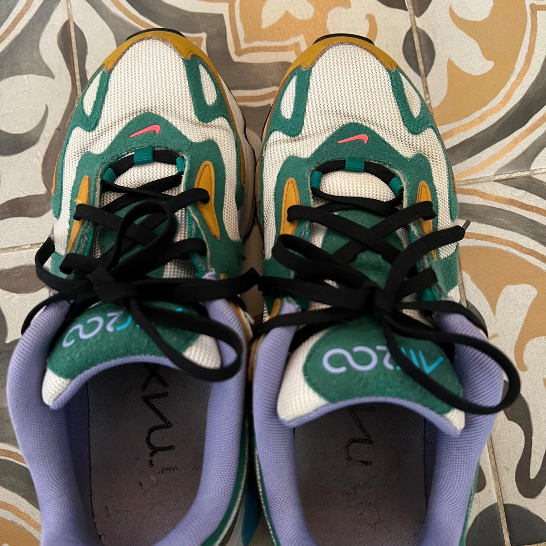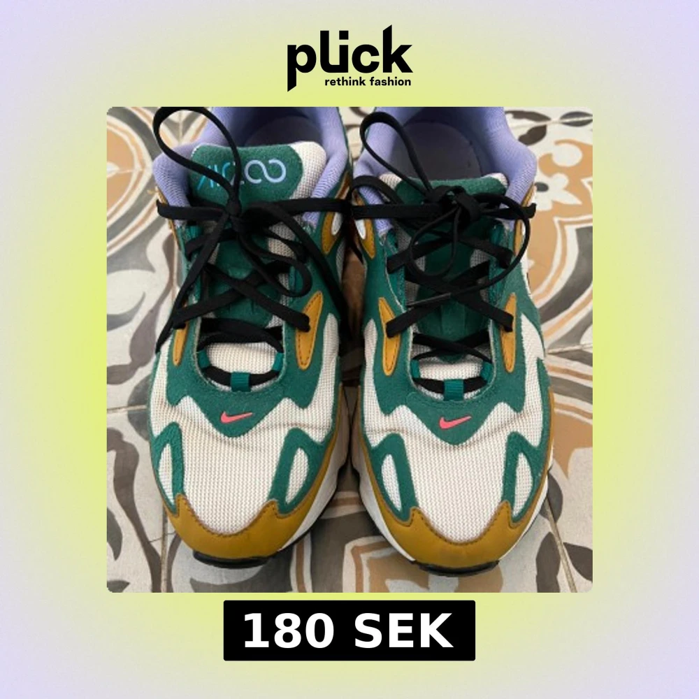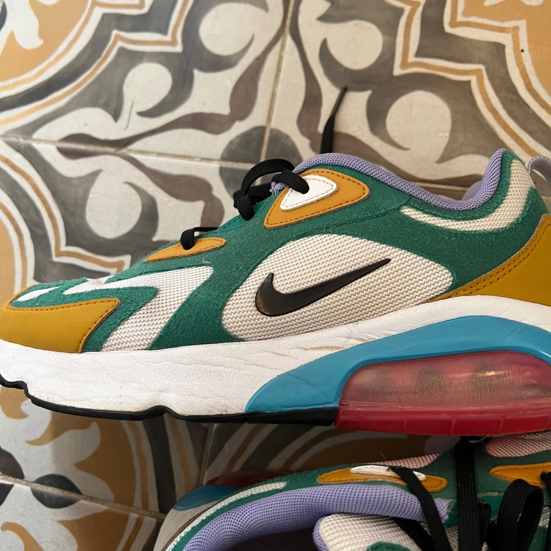 Nike Air Max 200 sneakers med färgglada detaljer, och svart snörning. Skön dämpning och unik design som sticker ut. De har använts en del, så det är lite smuts på dem, men det går nog att fixa. De är något creesade. Storlek 40,5. 😊