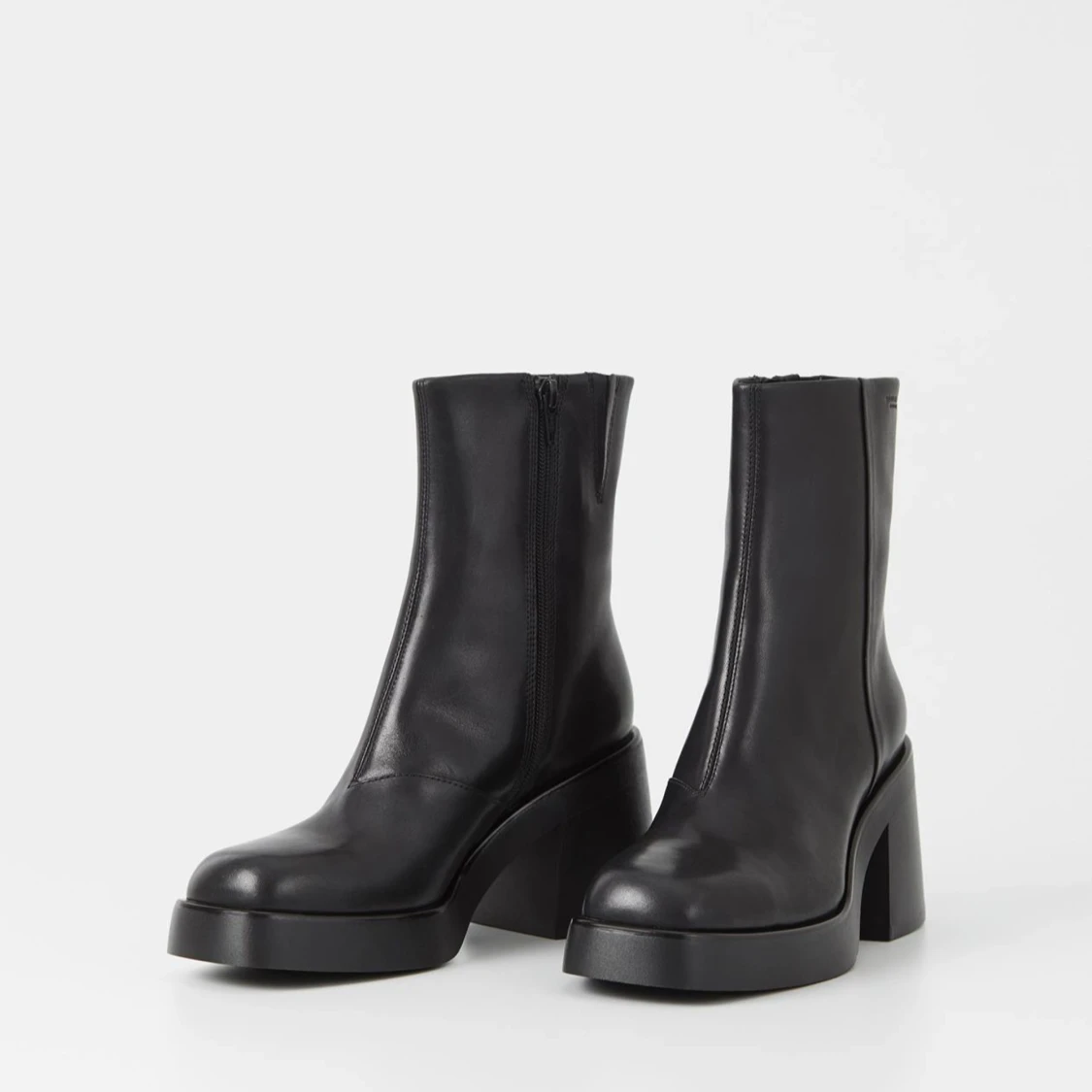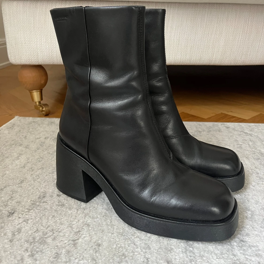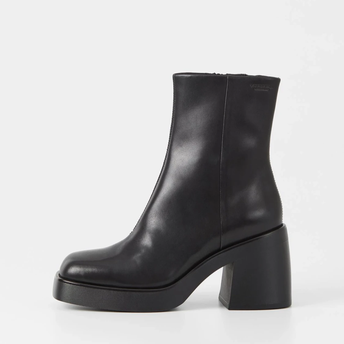 ✨ Säljer ett par Vagabond Brooke boots i svart skinn, platåstövletter med chunky silhuett och fyrkantig tå. Klackhöjd 87 mm, dragkedja på insidan. Helt nya sampleskor, endast testade i butik. Säljes p.g.a. fel storlek. Modellen är något stor i storlekarna. Nypris ca 1 900 kr.