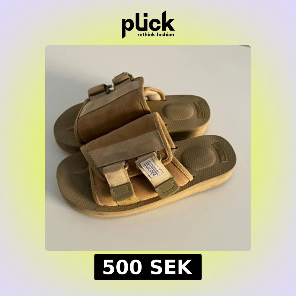 Säljer ett par beige sandaler från Suicoke med breda remmar i mocka och textil, justerbara spännen och Vibram-sula. Snygg chunky look.