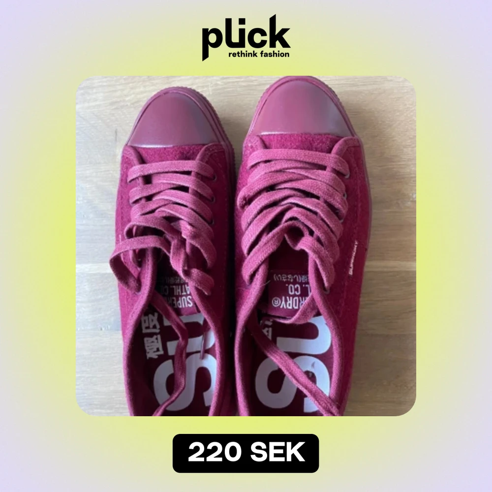 Low Pro Luxe Trainers i färg vinröd (Deep Berry). Den är storlek EU37 men liten i storleken därför säljs dem. Aldrig använt och skokartongen finns kvar. På Superdry hemsidan pris £34,99. Skriv om mer bilder önskas. Köpare betalar frakten.