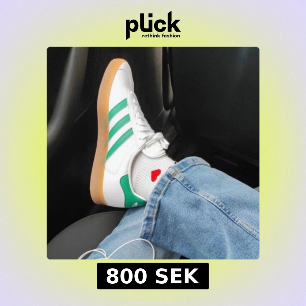 Säljer ett par klassiska Adidas Gazelle sneakers i vitt med gröna detaljer. Supersnygga men används inte längre💕 Bara använda 1 eller 2 gånger så superbra skick✨ perfekta inför sommaren!! Bara att skriva om ni vill ha fler bilder eller om ni har frågor🩷