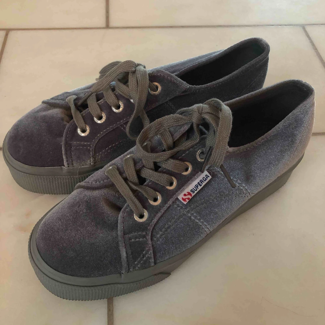 Platåsneakers ifrån Superga. Grå sammet. Använda 1 gång.