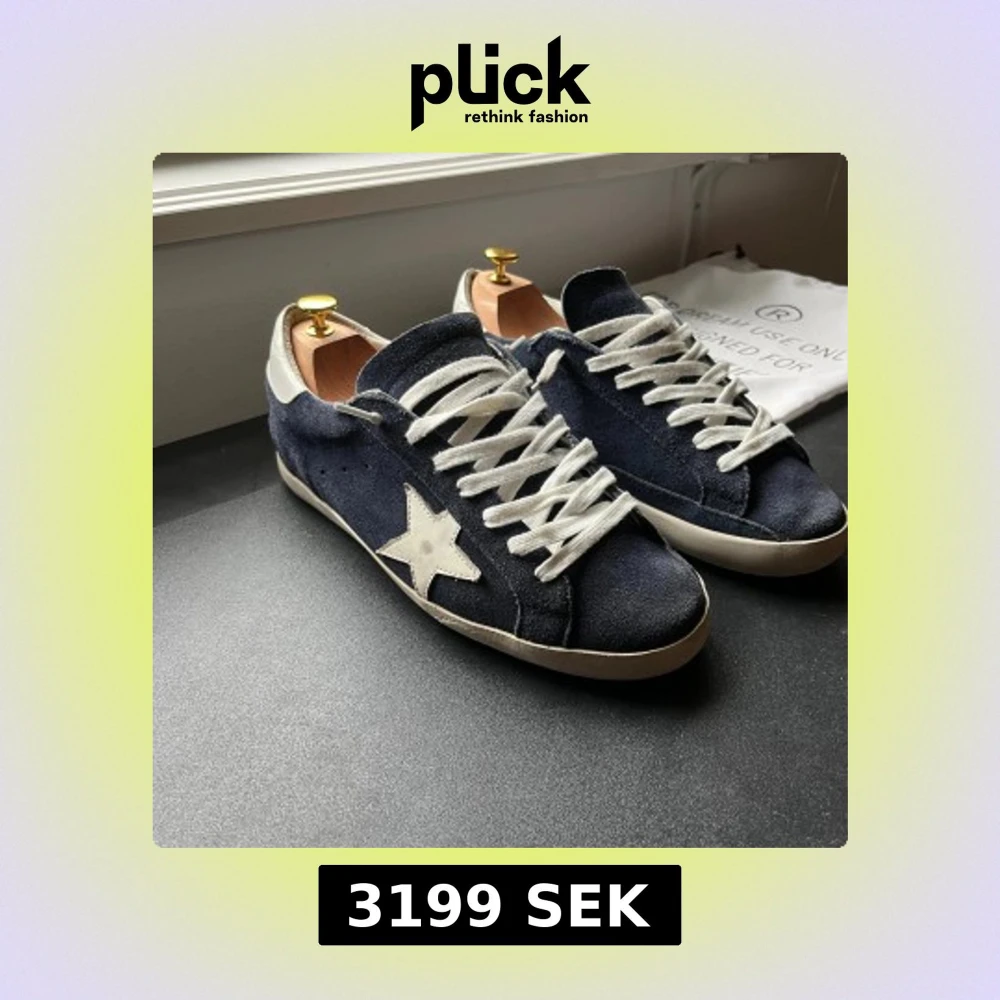 Säljer dessa asfeta Golden goose som är i en perfekt mörkblå färg. Denna colourway är sjukt populär så missa inte dessa! Lite heel drag som syns på sista bilden men i övrigt inga defekter! Äkthetsbevis samt dustbag kommer med. Hör av er vid frågor eller funderingar!🤝