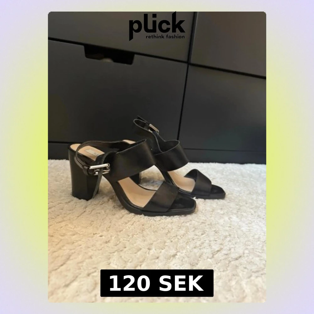 Säljer ett par svarta sandaler från Steven New York i storlek 36. Skorna har breda remmar, öppen tå och hög klack. Tillverkade i skinn med spänne vid ankeln. Perfekta för dig som gillar stilrena och klassiska vibes.