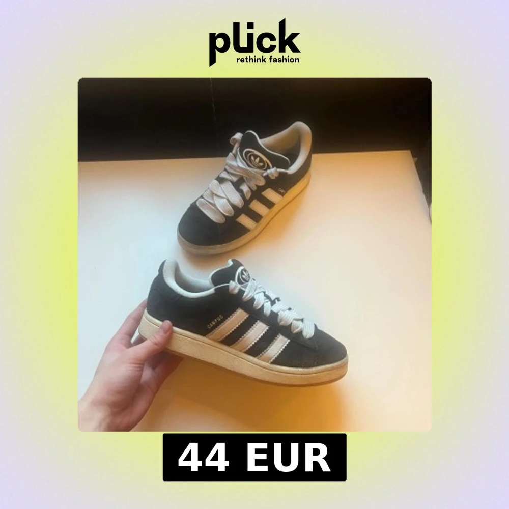 Snygga svarta Adidas Campus sneakers med vita detaljer och klassiska tre ränder på sidan. Storlek 39,5. I 10/10 skick