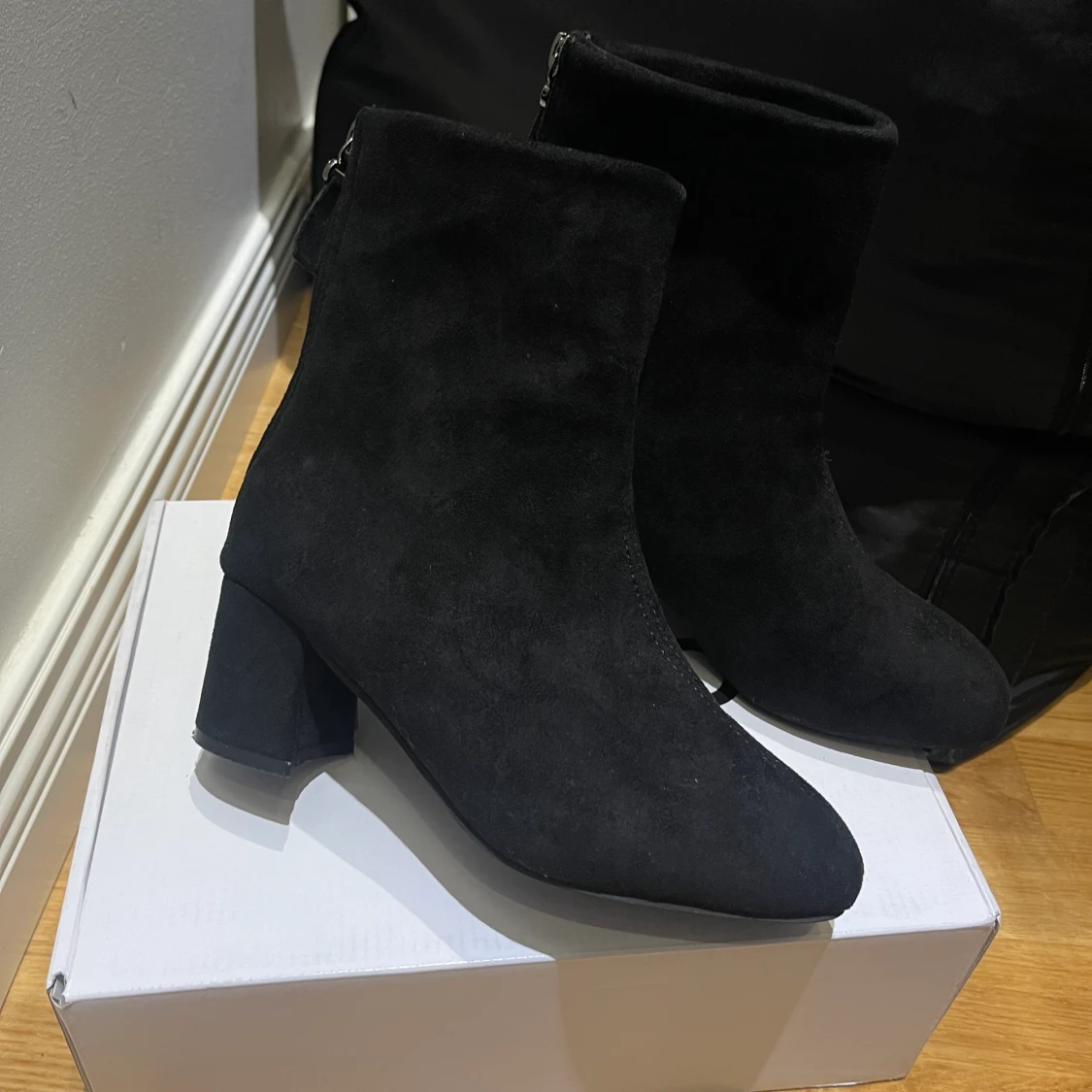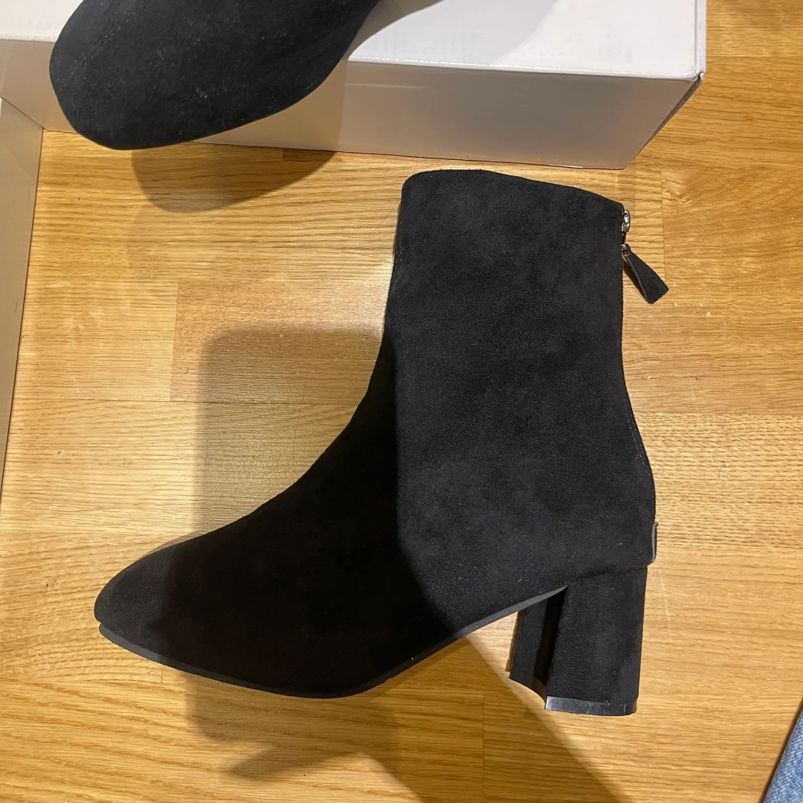 Svart stövletter i mocka liknande material, använda 1-2 gånger men det märks inte alls, ser ut som nya. Väldigt bekväm!!