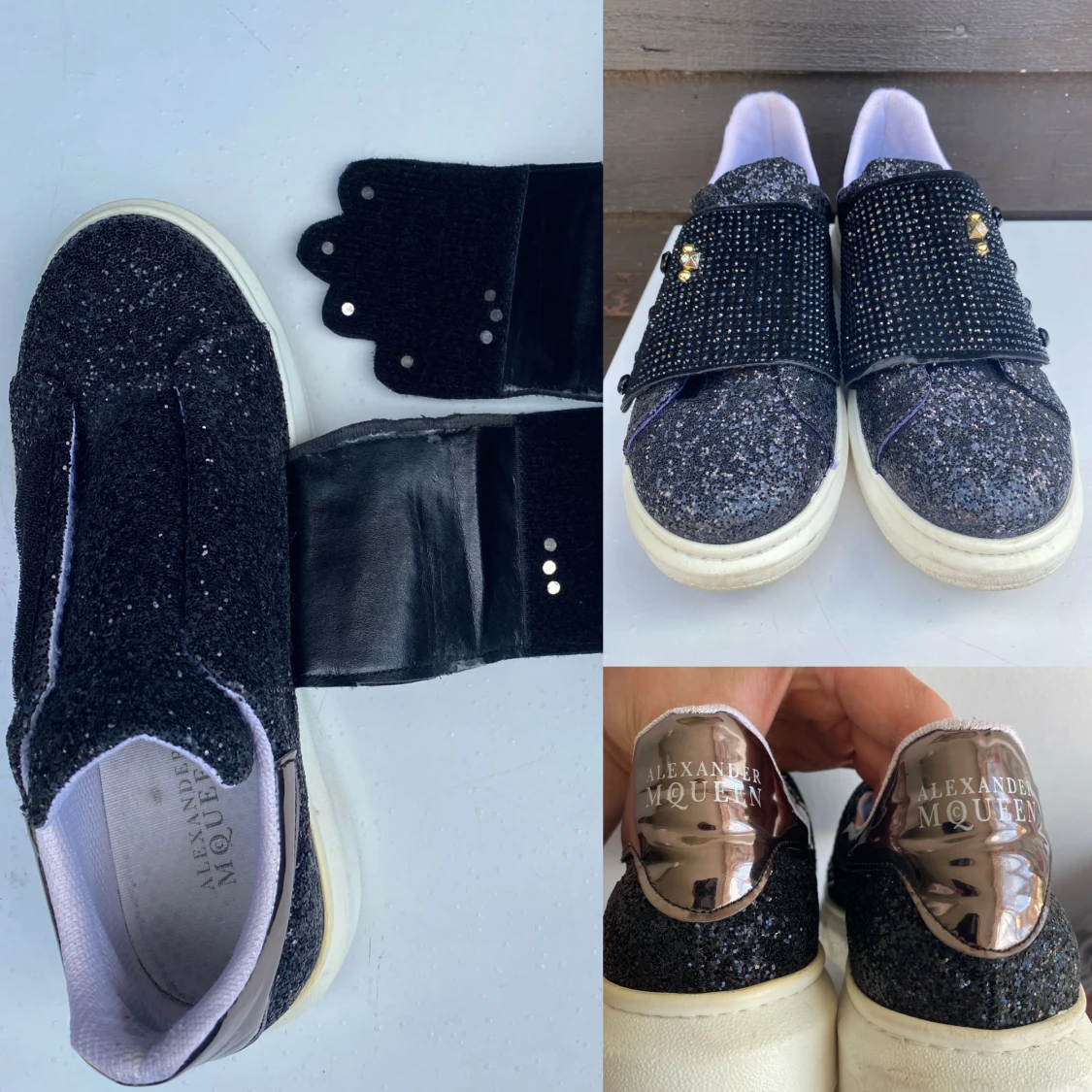 -Svarta, glittriga Alexander McQueen sneakers -Storlek 39 - Använda med bruksslitage, men trots detta i mycket bra skick - missfärgning, se bild