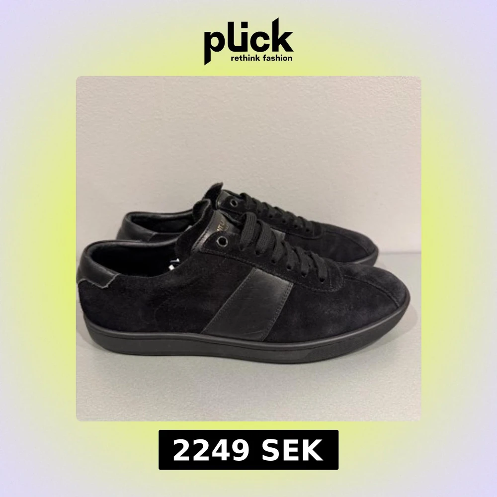Svarta sneakers från Saint Laurent i mocka och skinn. Rätt bra skick, endast skorna medföljer. Storlek 42/43 Hör av er vid frågor eller funderingar.