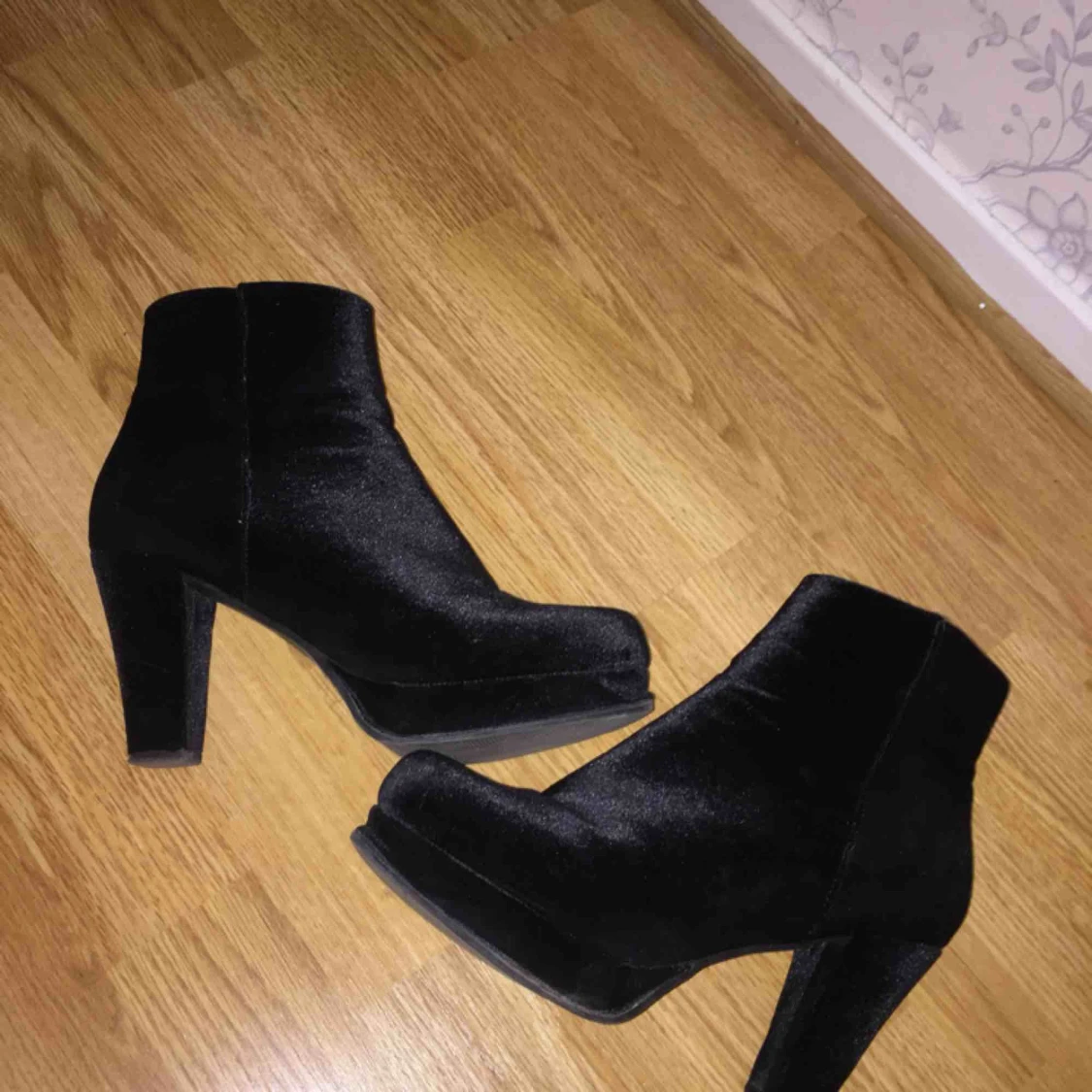 Snyggaste klackarna i sammetsliknande tyg säljes. Med sorg i hjärtat jag säljer men knäproblem gör att de inte kan användas :( Passar lika bra till vardag som till fest, ytterst lite använda.