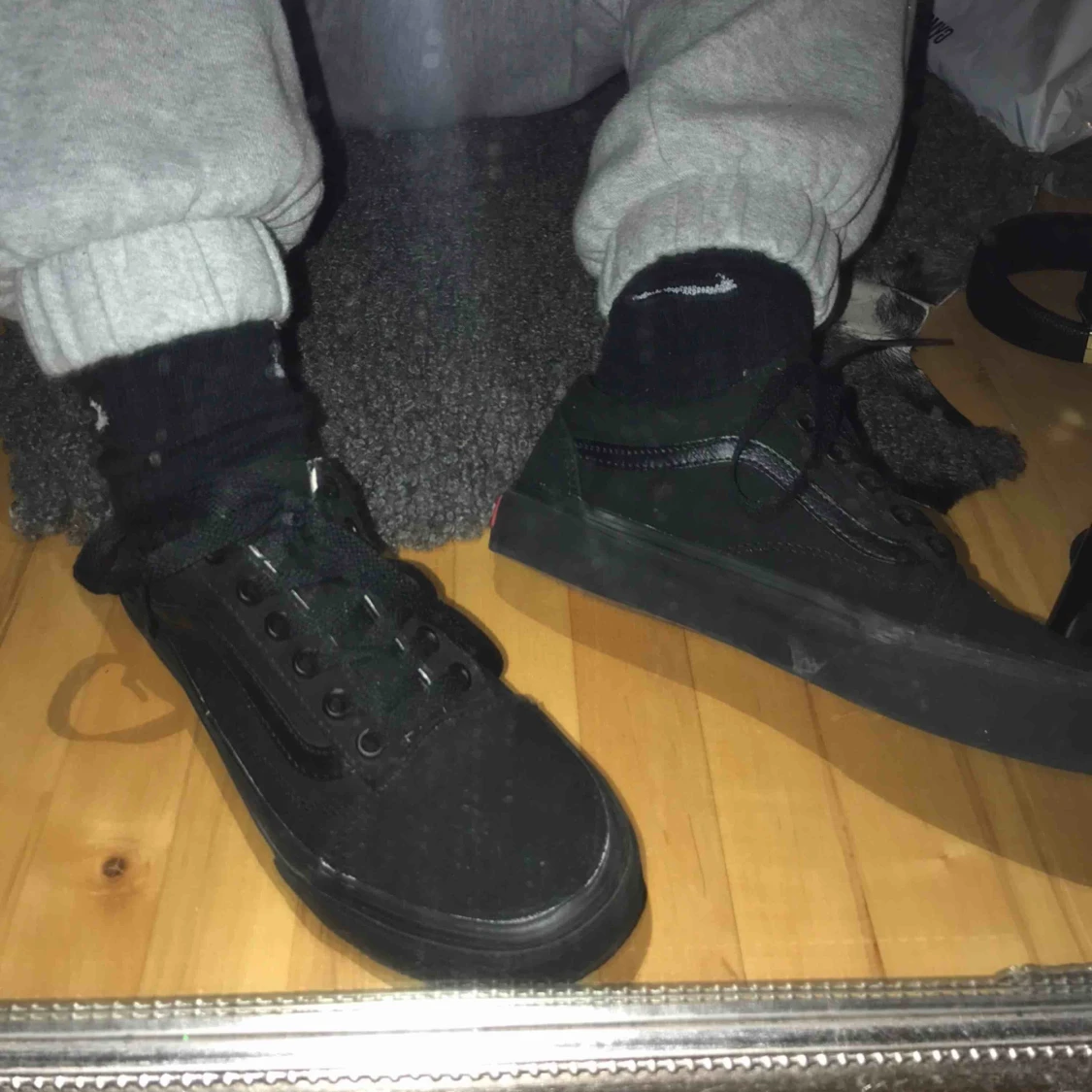 Helt vanliga svarta old-school vans i storlek 37 i väldigt bra skick. Smörerna är helsvarta trots att de ser marinblåa ut i bilden