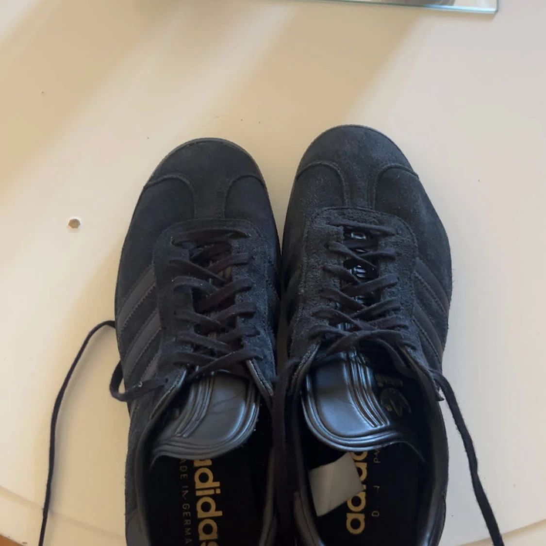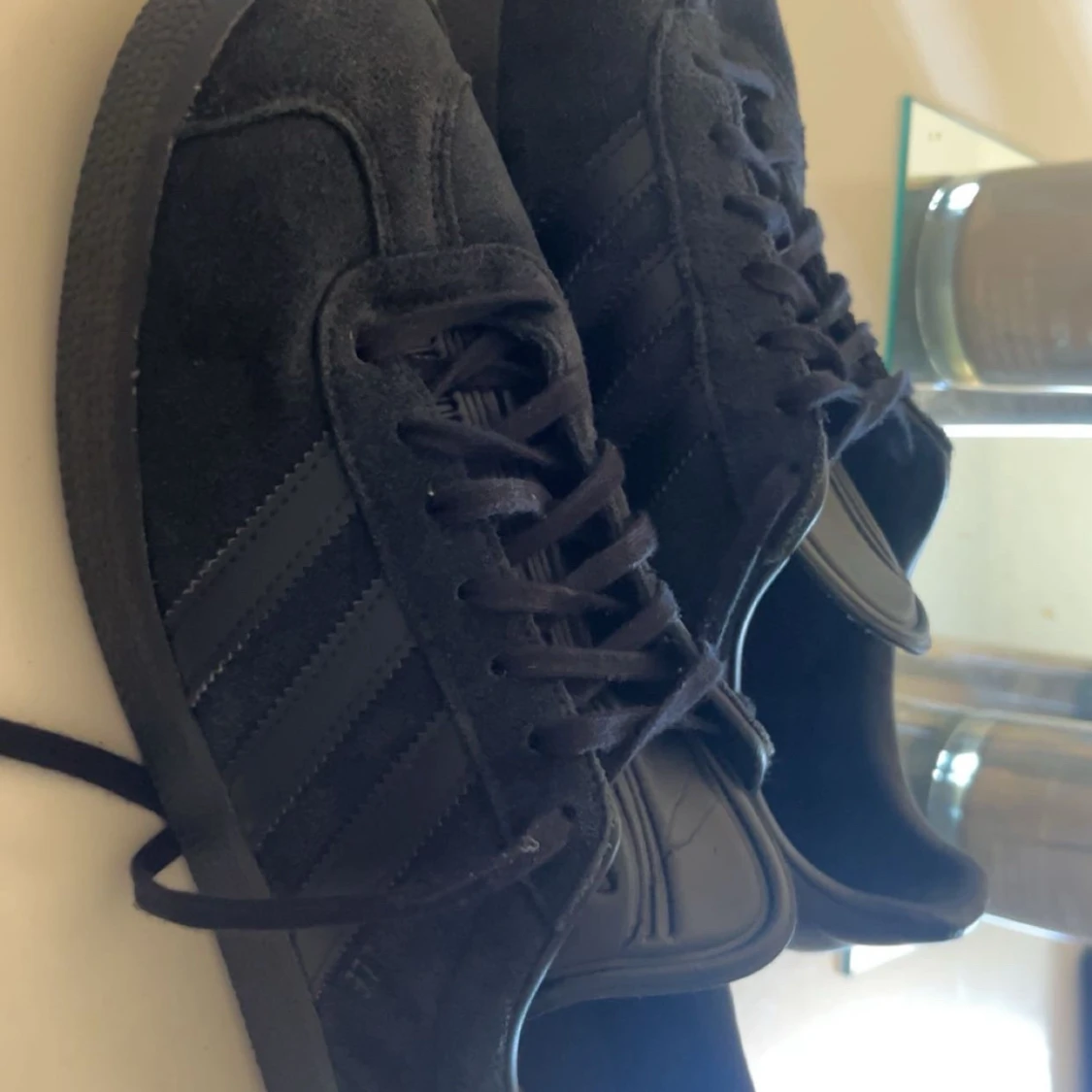 Säljer ett par svarta Adidas Campus sneakers i mocka. Klassisk design med svarta ränder på sidorna och snörning framtill. Perfekta för dig som gillar stilrena och tidlösa skor. Inga större defekter på dem