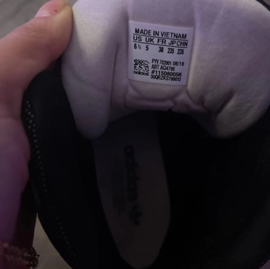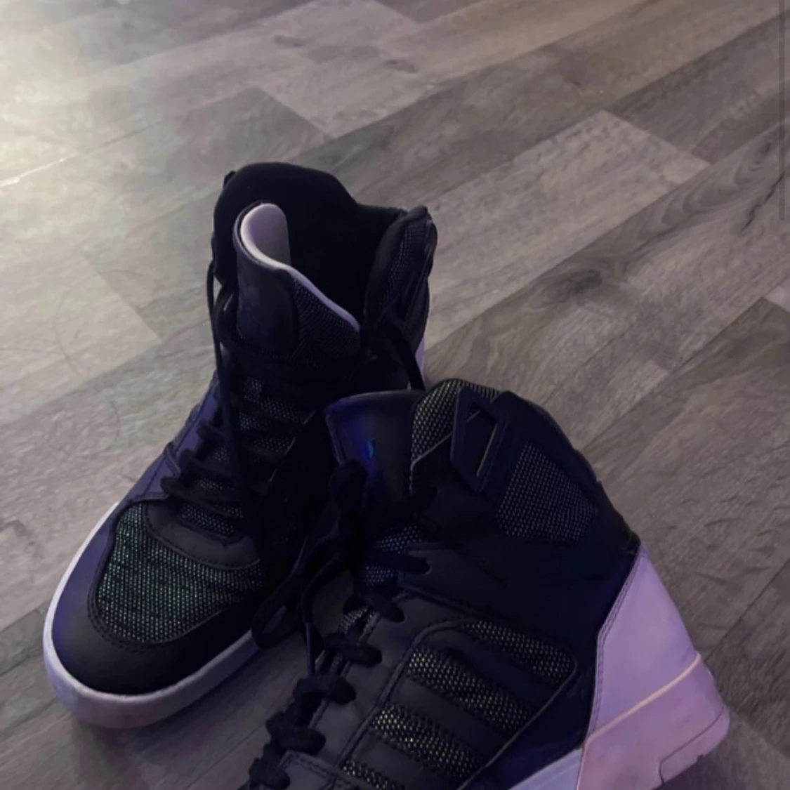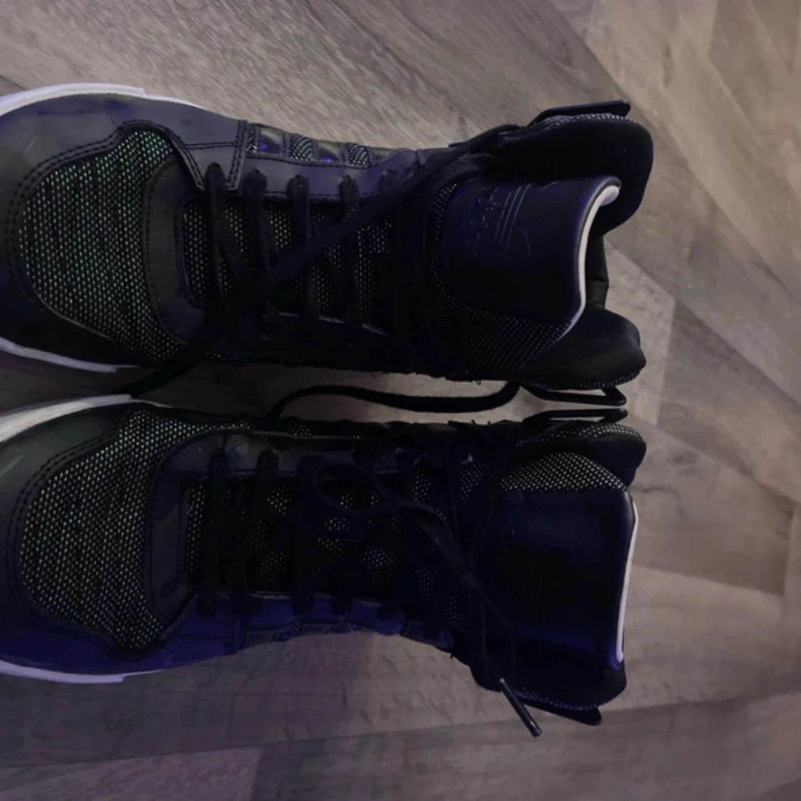 Säljer ett par svarta Adidas sneakers i storlek 38. De har en cool design med vita detaljer och snörning. Perfekta för vardagsbruk eller träning. Skorna är i bra skick och redo för nya äventyr!
