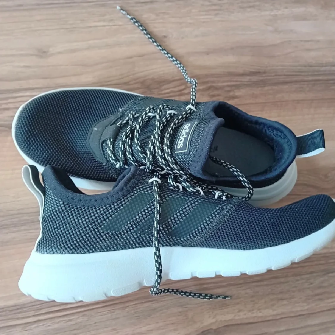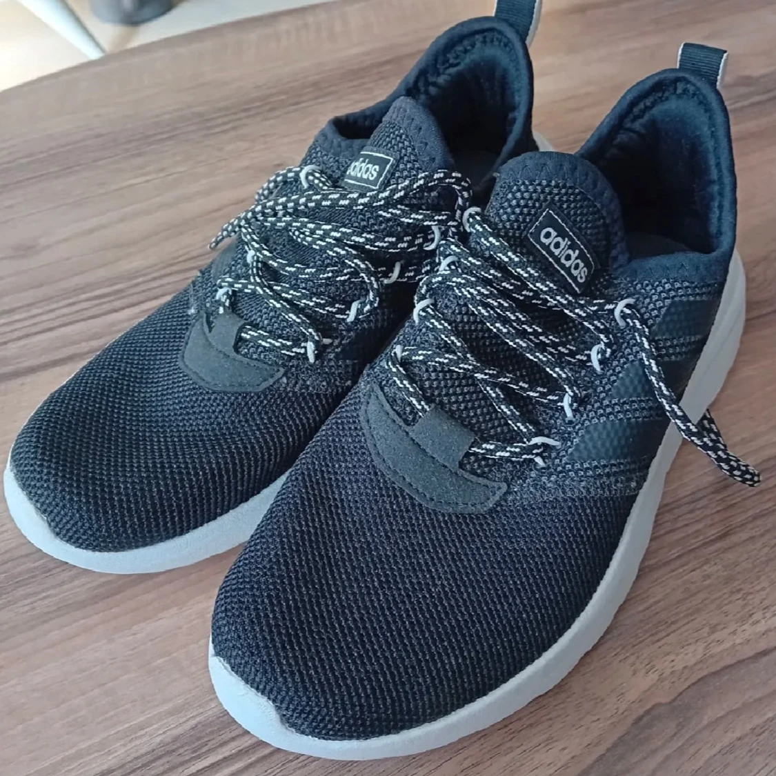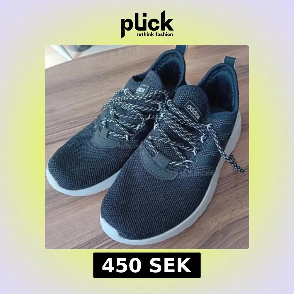 Snygga svarta Adidas sneakers med vit, platt sula och stickad ovandel i syntetmaterial. Skorna har svartvita snören och klassisk Adidas-logga på plösen. Perfekta för dig som gillar sportig stil och vill ha bekväma skor till vardags.