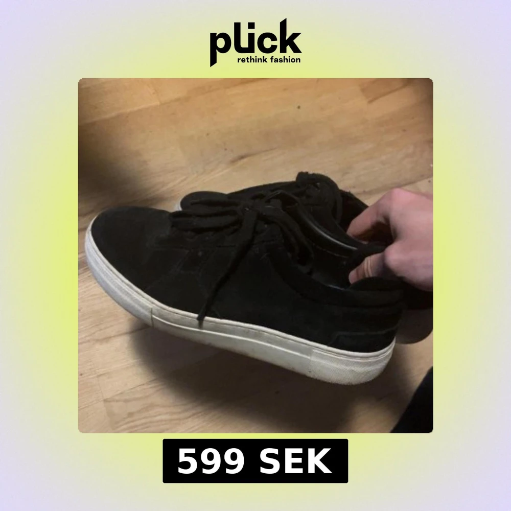 Svarta arigato med ovandel i mocka och klassisk vit sula. Skorna har snörning och en stilren, enkel design som passar till det mesta. Rund tå och platt sula ger en avslappnad vibe. Perfekta för dig som gillar en clean och tidlös look.