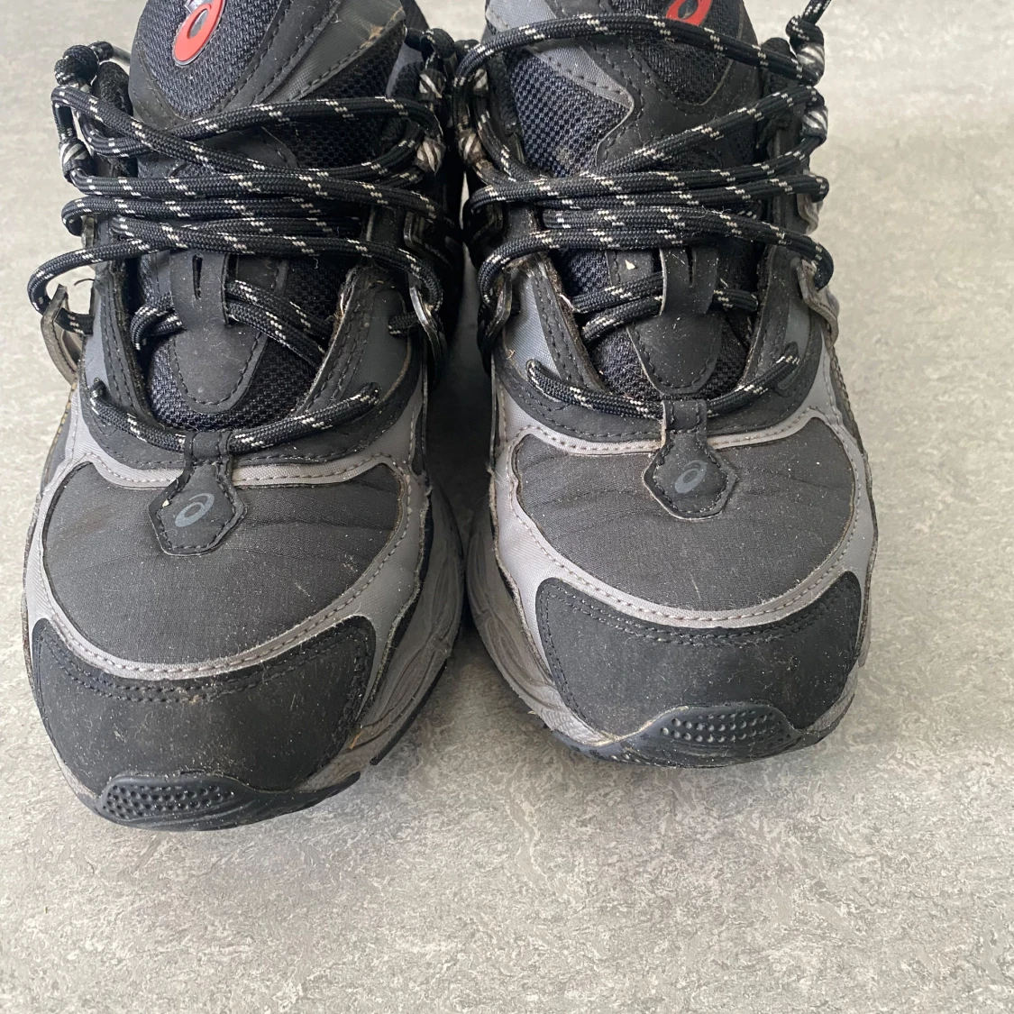 Svarta Asics GEL sneakers med grå detaljer och reflekterande partier. Skorna har snörning med svarta och vita skosnören, samt röd Asics-logga på plösen och GEL-märkning bak. Ovandelen är i syntet och mesh för bra andningsförmåga och komfort.
