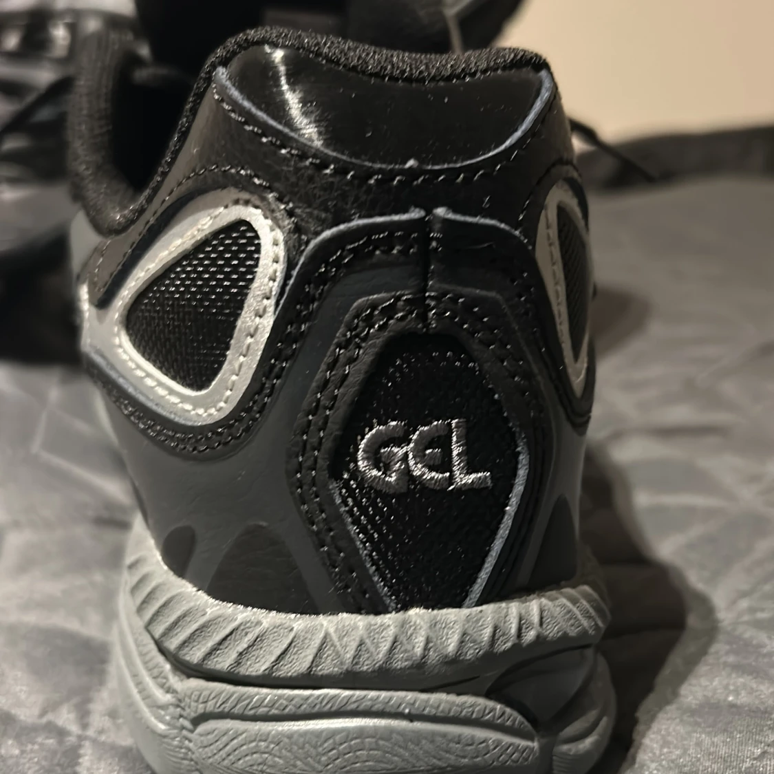 Säljer ett par svarta och silverfärgade ASICS GEL skor. Säljer dom pågrund av att dom är för små för mig. Jag har sko boxen kvar.