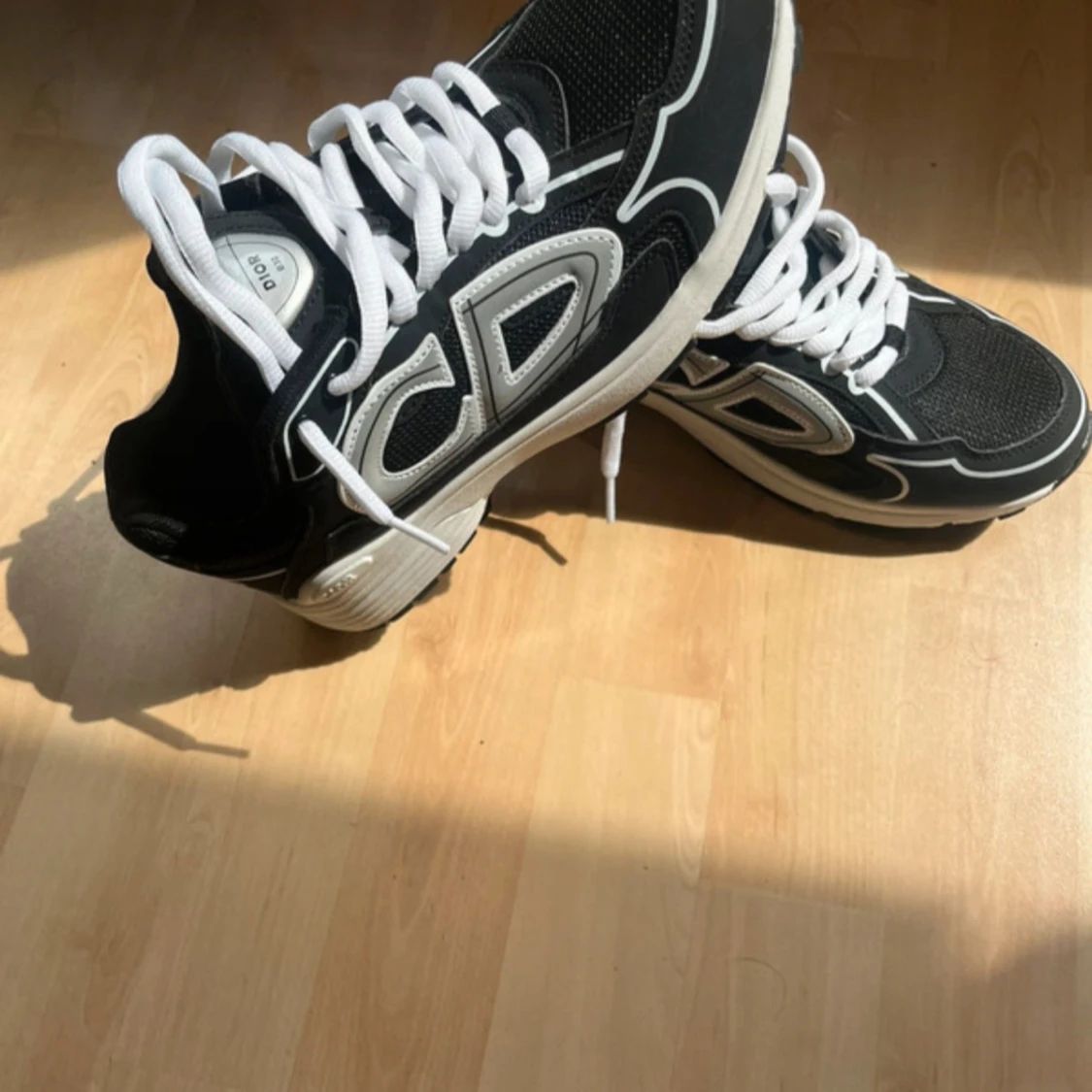 Snygga svarta B30 sneakers med vita och grå detaljer samt tydlig CD-logga på sidan. Skorna har vit sula och vita snören, och är tillverkade i textil och syntetmaterial. Perfekta för dig som vill sticka ut med exklusiva och trendiga sneakers.