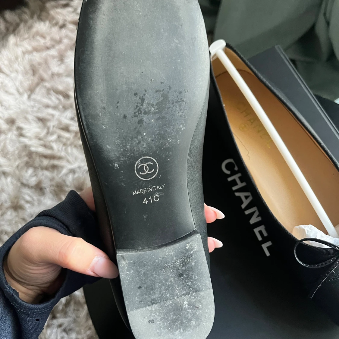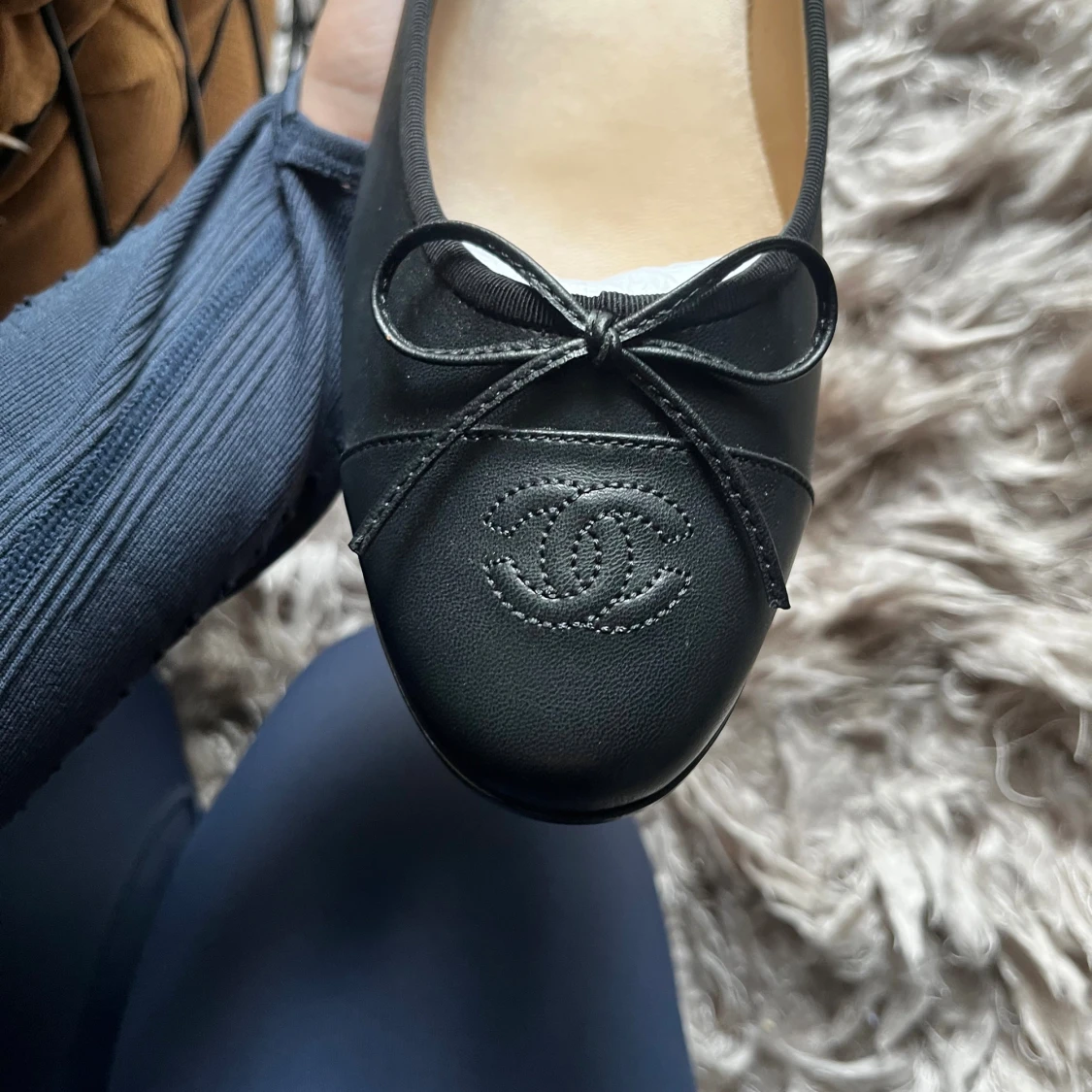 Ballerinas i äkta skinn, st 41 men passar mig som brukar ha 40. Present som inte används, kommer utan boxen men med dustbag, kan gå ner i pris vid snabb affär
