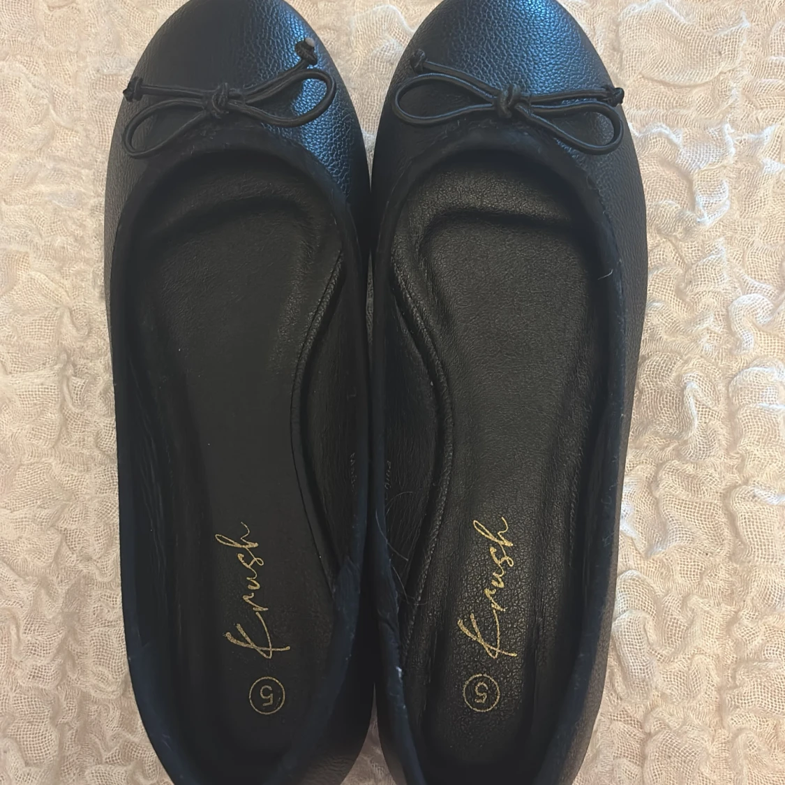 NYA ALDRIG ANVÄND! Stilrena svarta ballerinaskor från Bohoo med rund tå och söt rosettdetalj framtill. Skorna är gjorda i syntetmaterial med lätt textur och har platt sula för extra komfort. Perfekta att slänga på sig när du vill ha en enkel men snygg look. Säljer då dom tyvärr var för små för mig