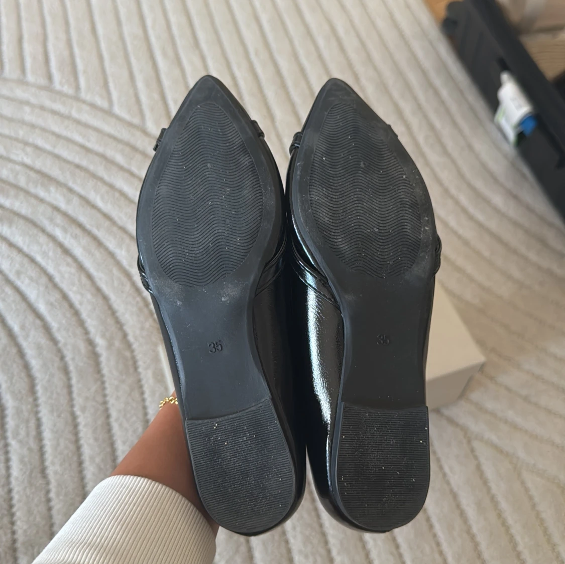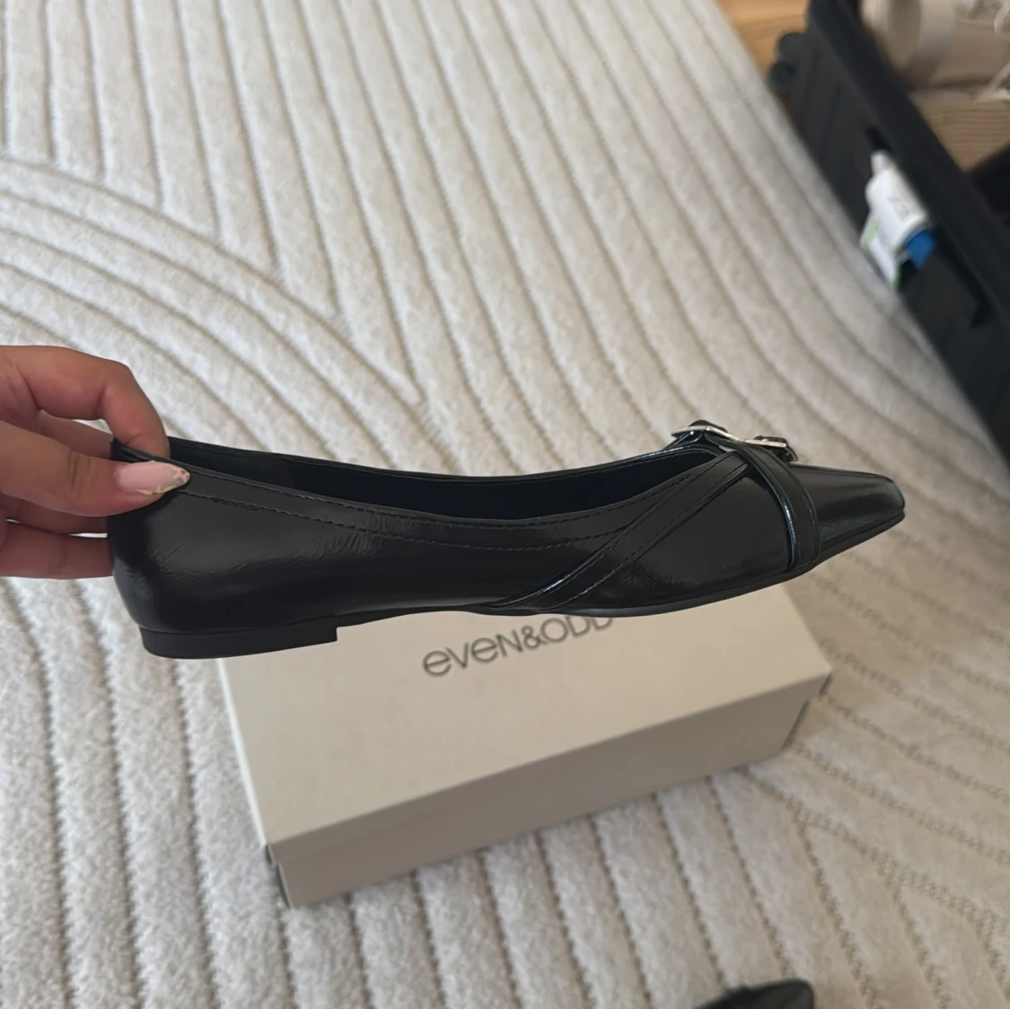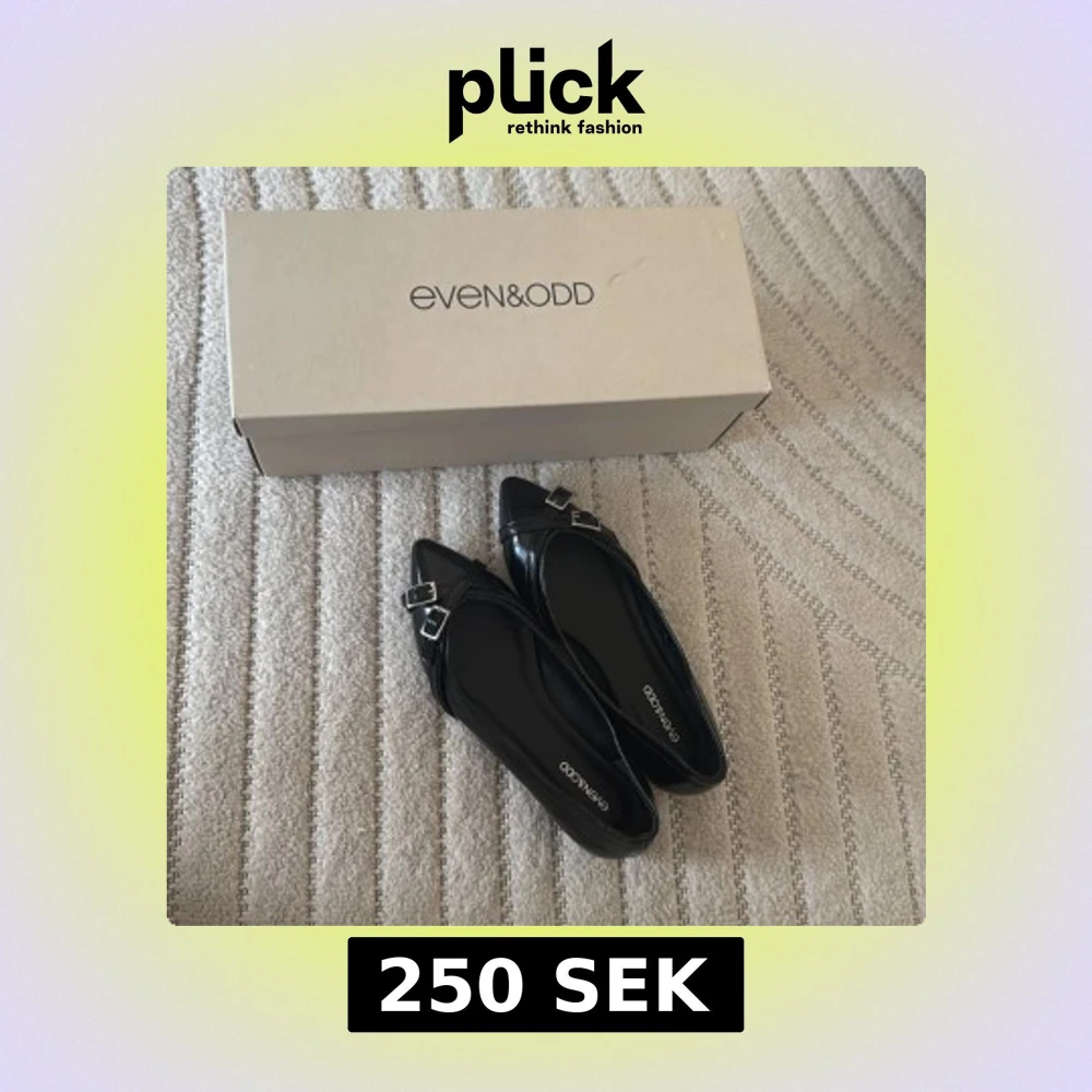Stilrena svarta ballerinaskor från Even&Odd med spetsig tå. Dom är använda max 5 minuter utomhus då jag upptäckte att dom kändes för små för mig. Dom är helt nya och fräscha som nyköpta.
