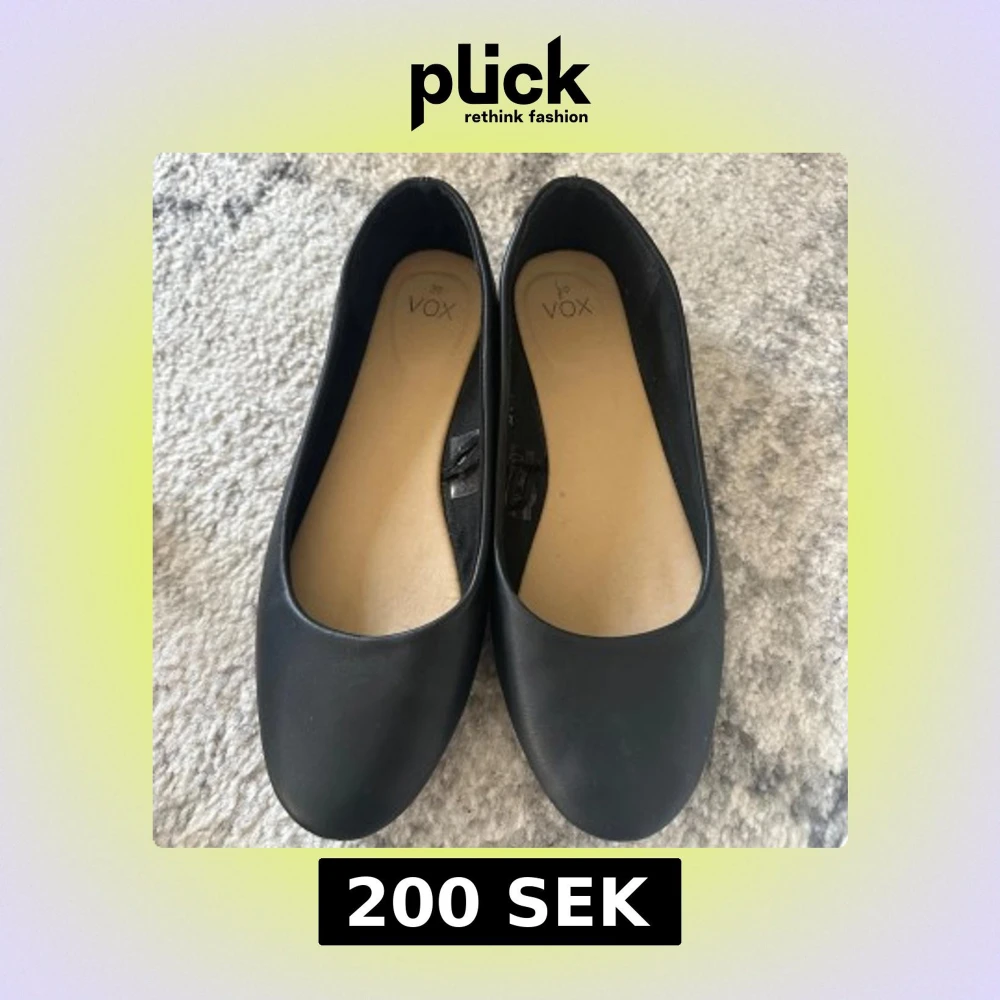 Snygga och stilrena svarta ballerinaskor från Vox. Perfekta för en enkel och bekväm look. De har en rund tå och är gjorda i ett mjukt material för extra komfort.