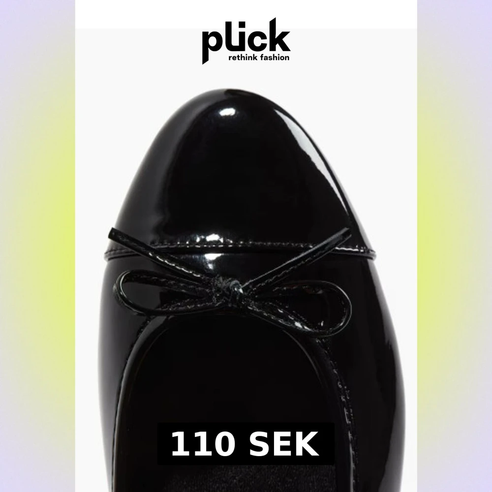 Snygga svarta ballerinaskor från H&M i glansigt syntetmaterial. Skorna har rund tå, platt sula och en liten rosett framtill som detalj. Perfekt för dig som gillar klassisk och stilren look med en touch av söt vibe. Använd en gång