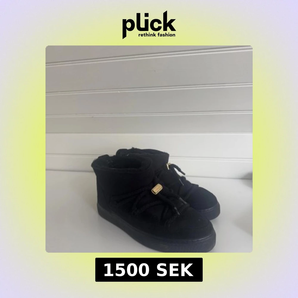 Säljer dessa svarta Inuikii low med mjukt vitt pälsfoder på insidan. Skorna har snörning med svarta band och guldfärgade detaljer framtill. Yttermaterialet är mocka och sulan är platt och robust i materialet. Köpta förra vintern och använda få gånger så i mycket bra skick!