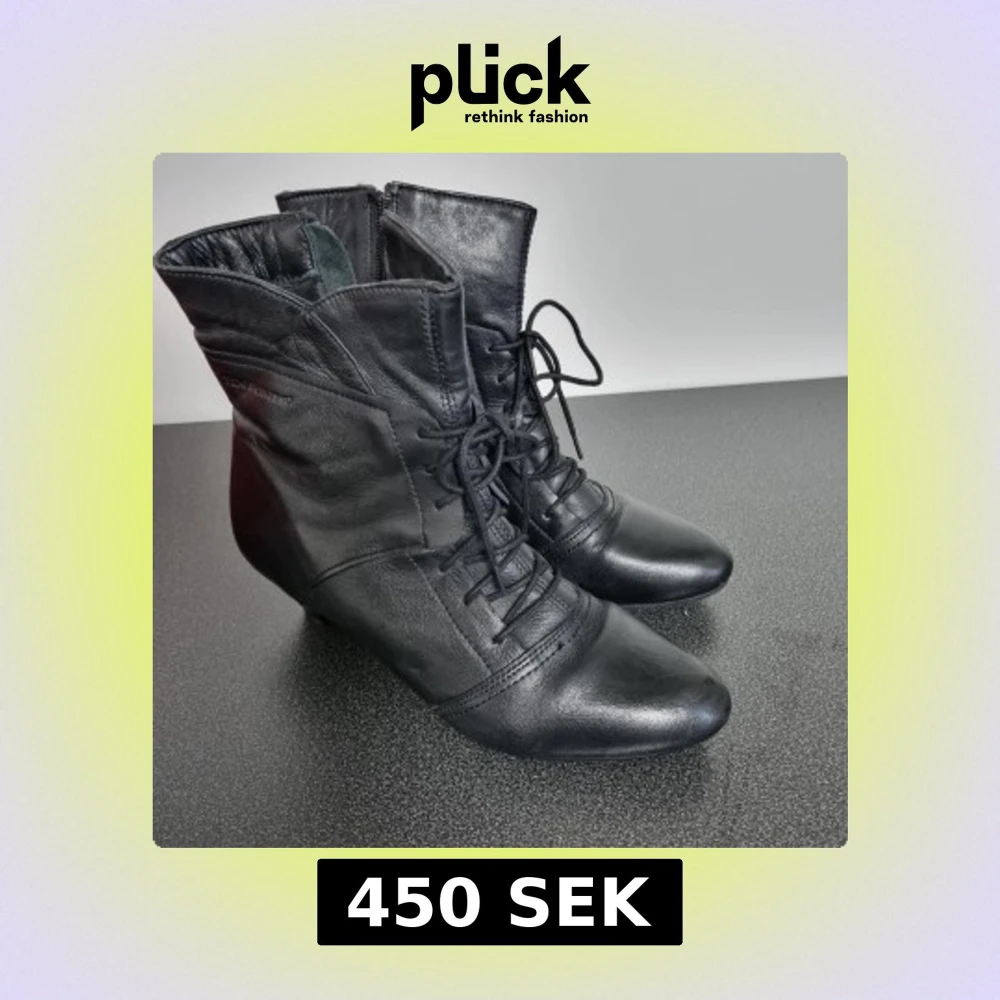Snygga svarta boots i skinn från Ten Points med snörning och dragkedja. De har en spetsig tå och en diskret klack, vilket ger en elegant look. Perfekta för både vardag och mer uppklädda tillfällen.