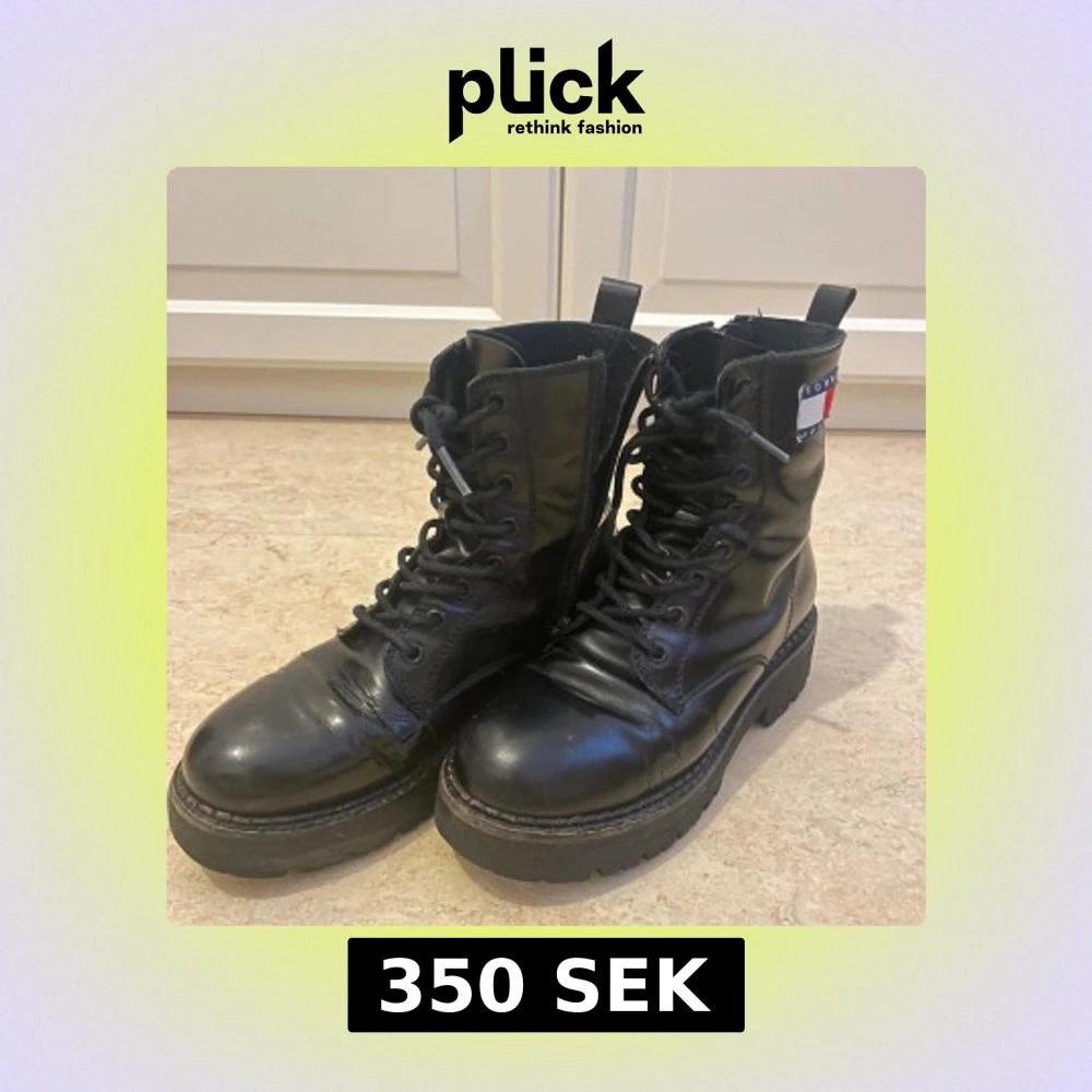 Snygga svarta boots från Tommy Hilfiger med grov sula och snörning framtill. Tillverkade i skinn med rund tå och coolt Tommy Jeans-märke på sidan. Perfekta för dig som vill ha en edgy och urban look.