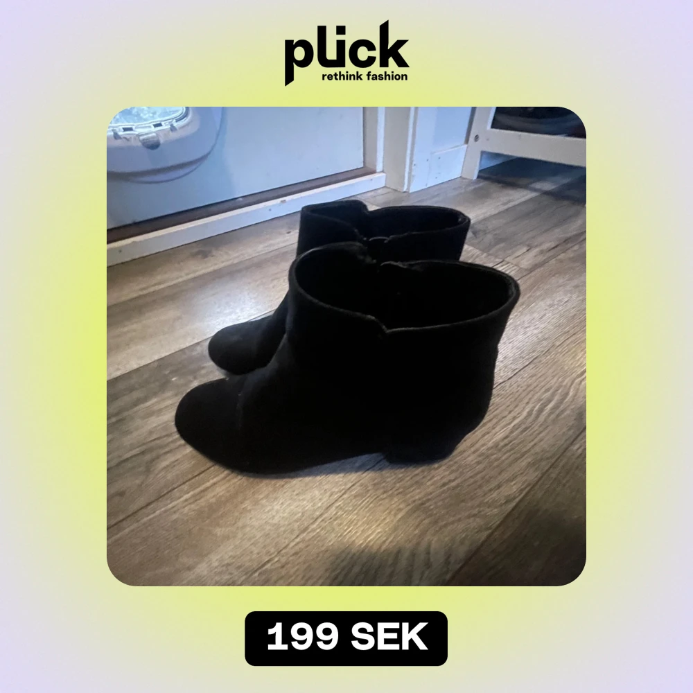 Säljer ett par snygga svarta boots i mocka. De har en låg klack och dragkedja på sidan för enkel på- och avtagning. Perfekta för höst och vinter, och passar både till vardags och fest. De är i mycket bra skick och redo för nya äventyr! Bra skick därav priset