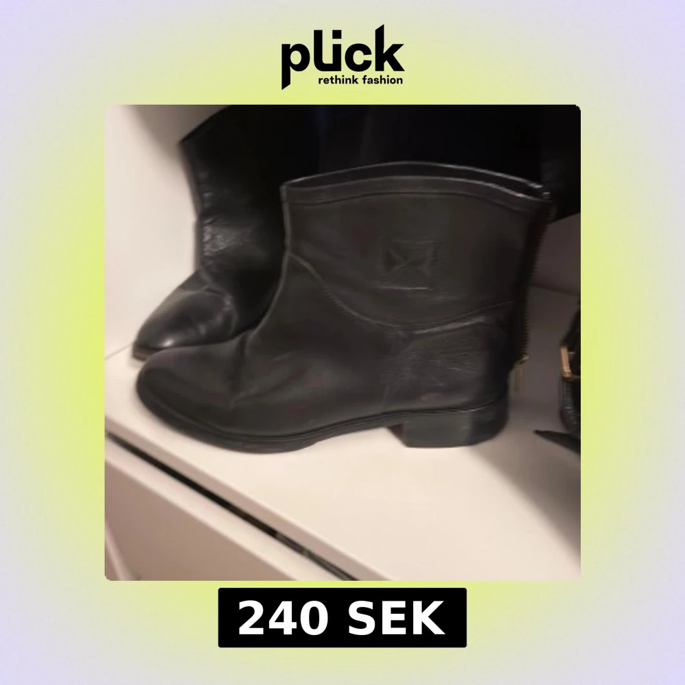Snygga svarta boots i äkta skinn med rund tå och platt sula. De har en guldig dragkedja baktill som ger en cool detalj. Perfekta för dig som gillar stilrena och tidlösa skor med lite edge. Passar till både jeans och kjol.