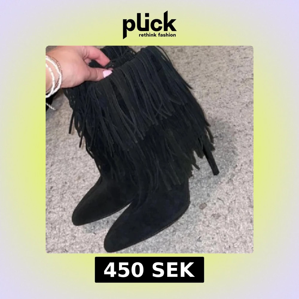 Snygga svarta boots med fransar som ger en cool och trendig look. De har en spetsig tå och är perfekta för att ge din outfit en extra edge. Klackarna är små i storleken så är egentligen 41 men jag skulle säga att de mer är en 39a